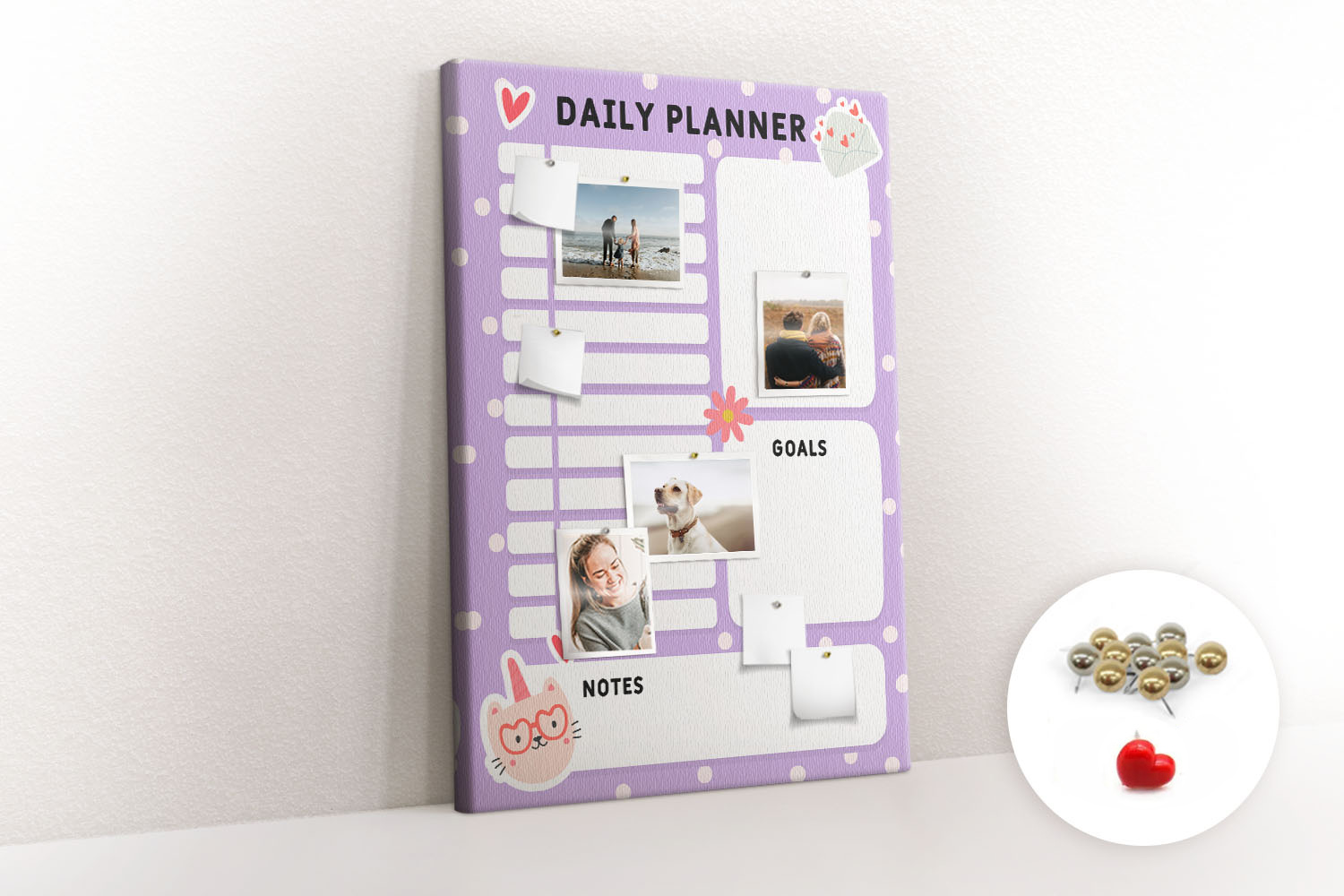2. Pinezki: W zestawie znajdują się szpilki, które pomogą w przypięciu różnych notatek.