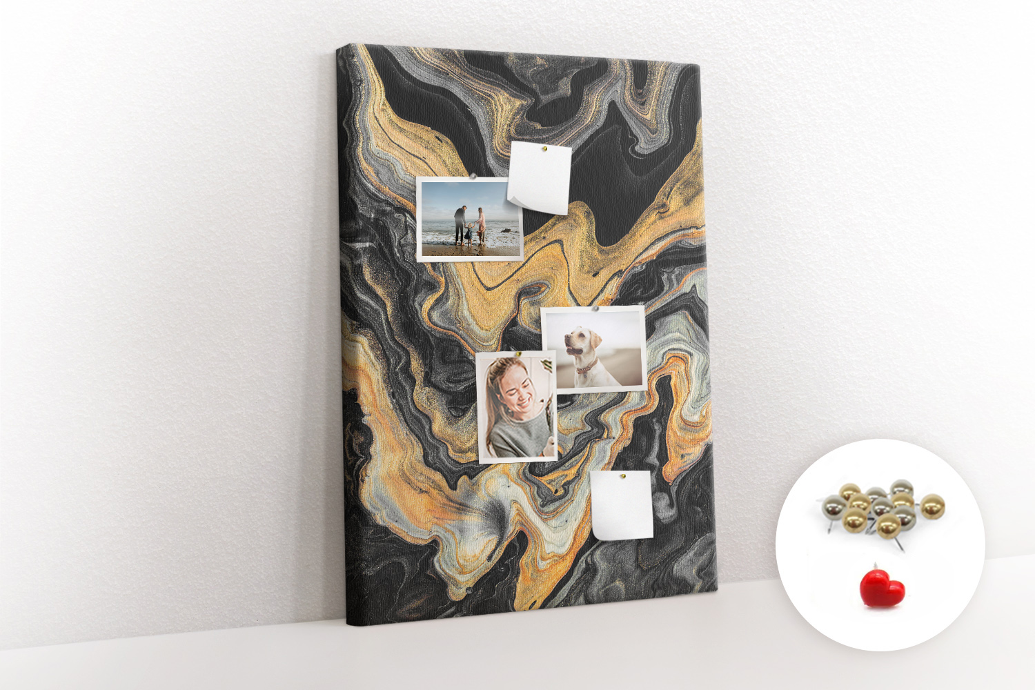 Tablica korkowa z nadrukiem z metalicznymi pinezkami