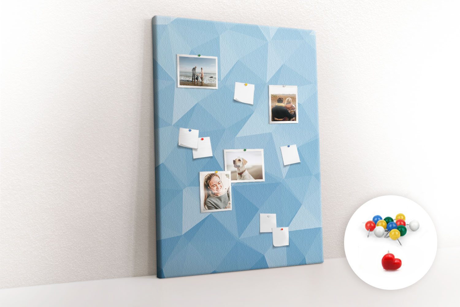 Tablica korkowa z nadrukiem z kolorowymi pinezkami