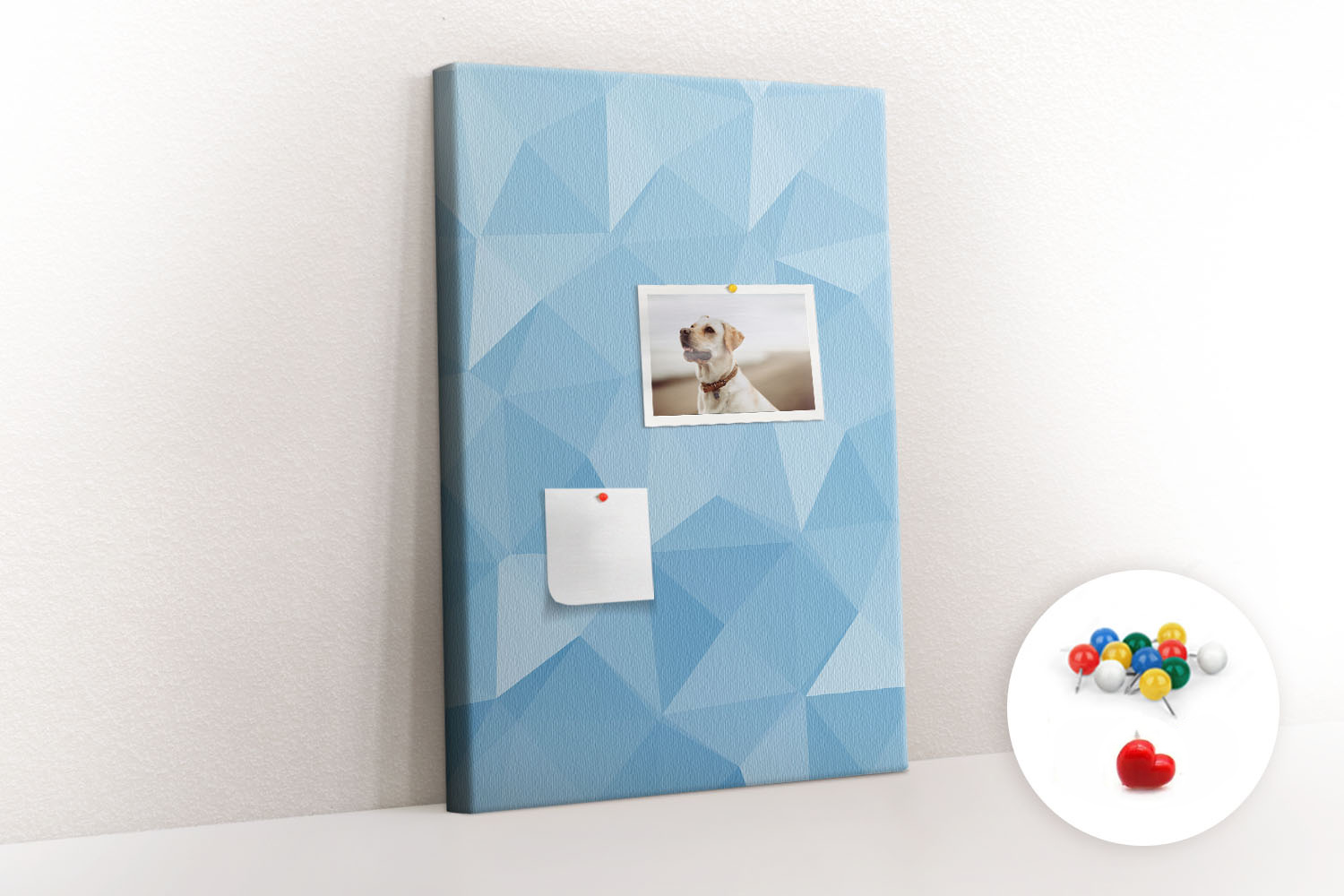 Tablica korkowa z nadrukiem z kolorowymi pinezkami
