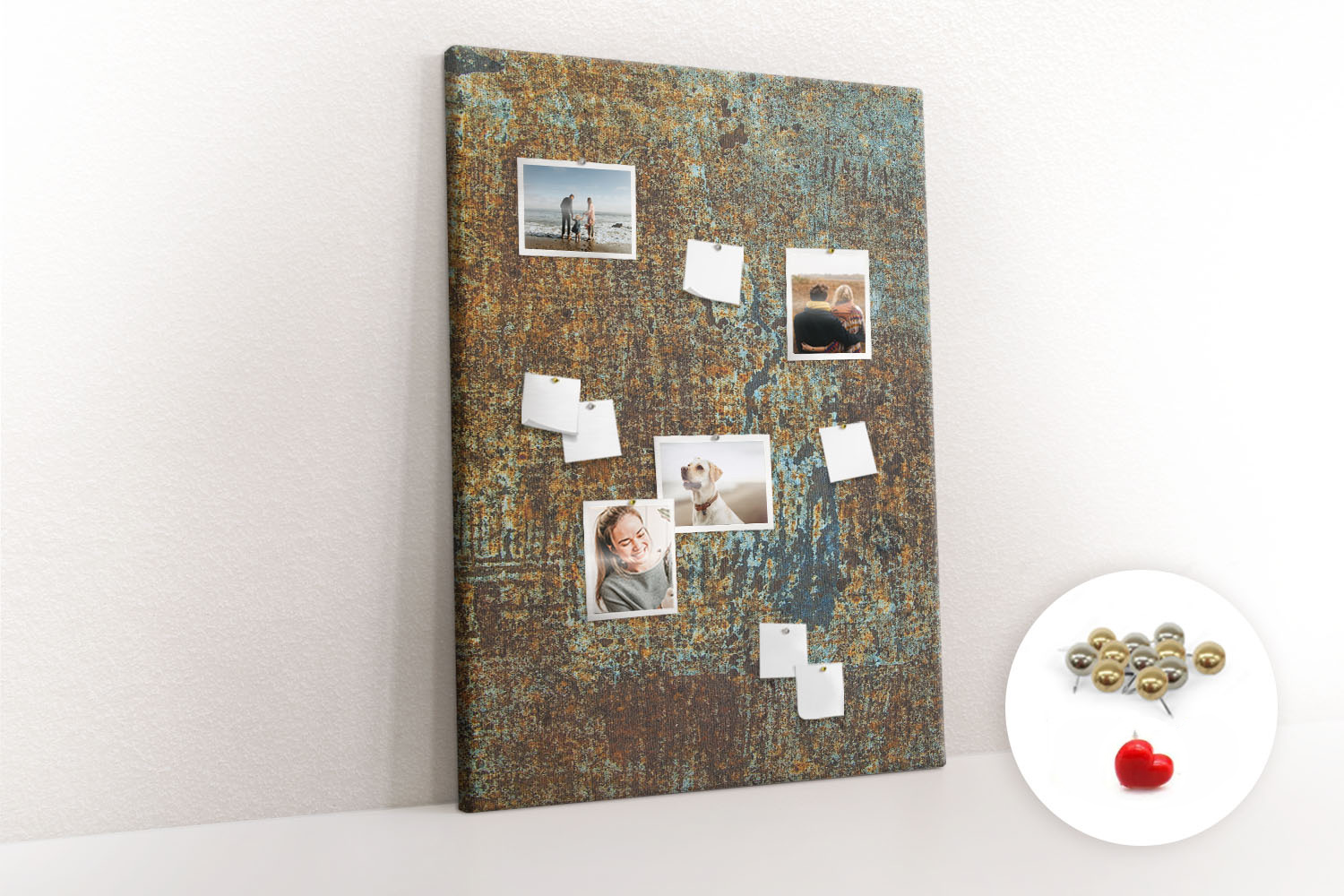 Tablica korkowa z nadrukiem z metalicznymi pinezkami