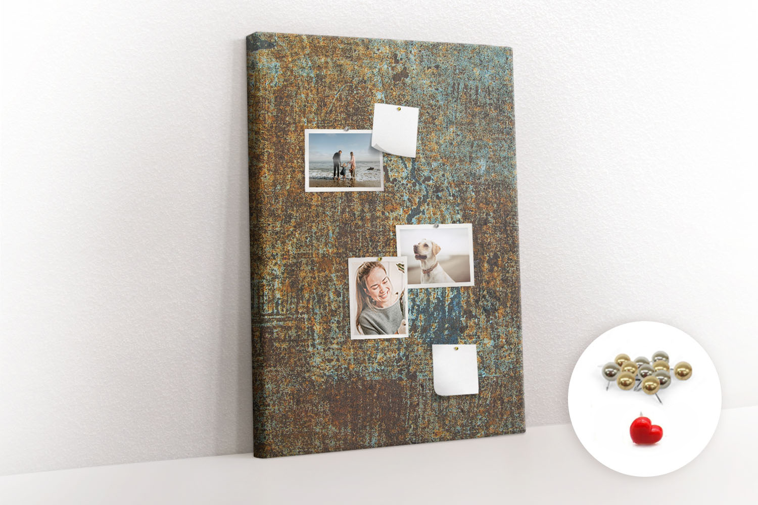 Tablica korkowa z nadrukiem z metalicznymi pinezkami