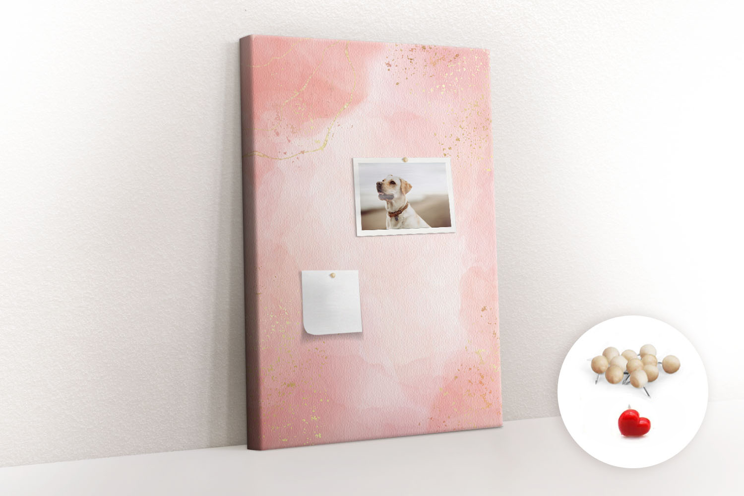 Tablica korkowa z nadrukiem z drewnianymi pinezkami