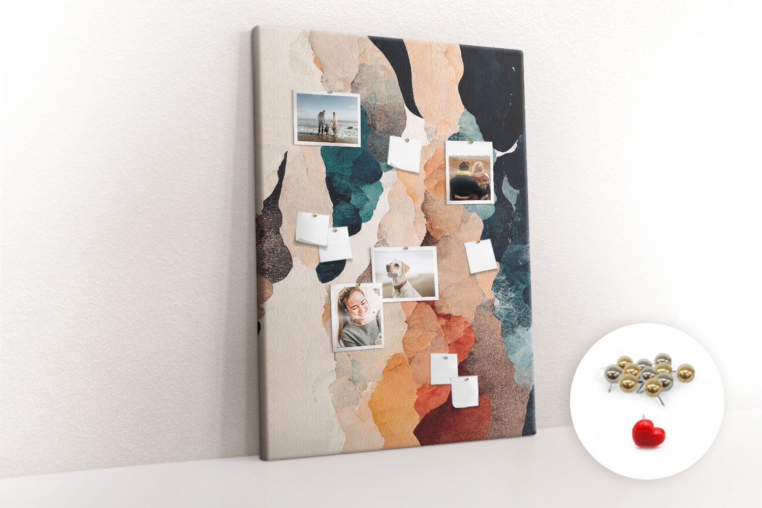 Tablica korkowa z nadrukiem z metalicznymi pinezkami