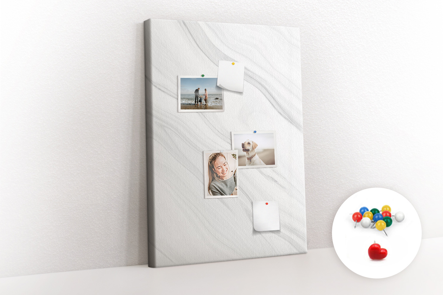 Tablica korkowa z nadrukiem z kolorowymi pinezkami