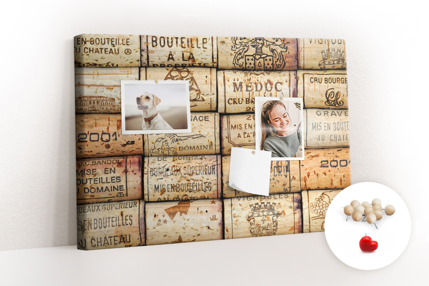 Tablica korkowa z nadrukiem dekoracyjna + pinezki Korki wina