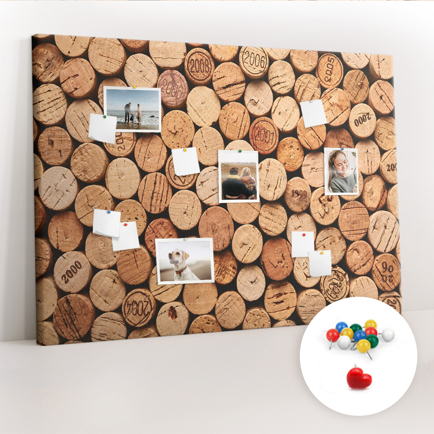 Tablica korkowa z nadrukiem z kolorowymi pinezkami