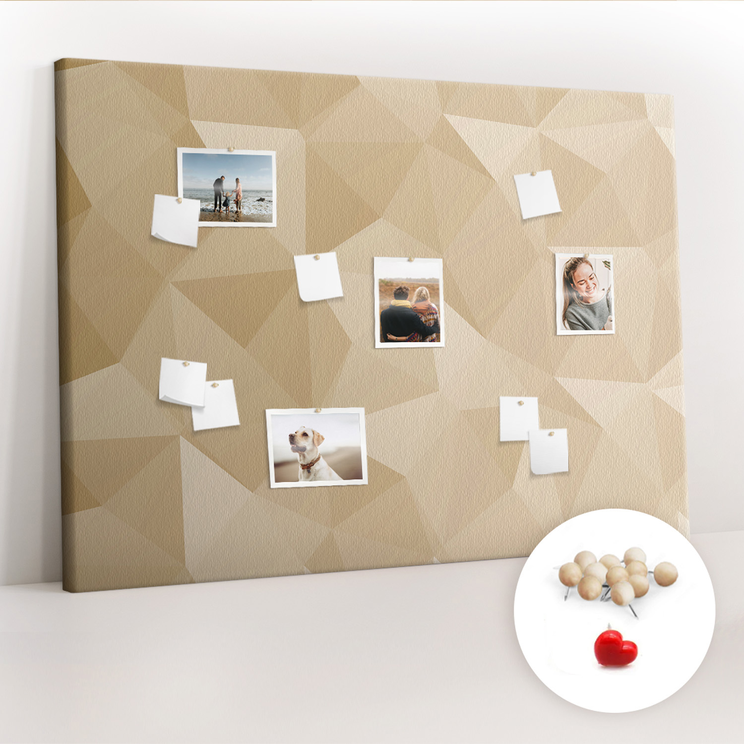 Tablica korkowa z nadrukiem z drewnianymi pinezkami