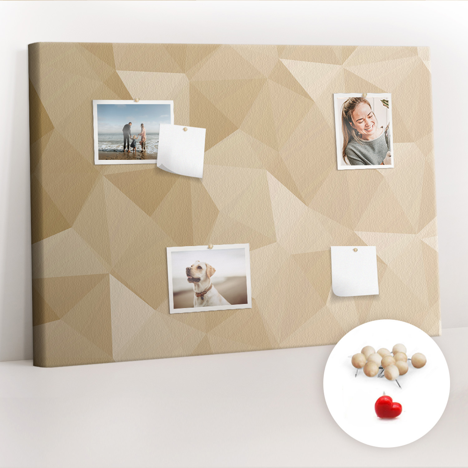 Tablica korkowa z nadrukiem z drewnianymi pinezkami