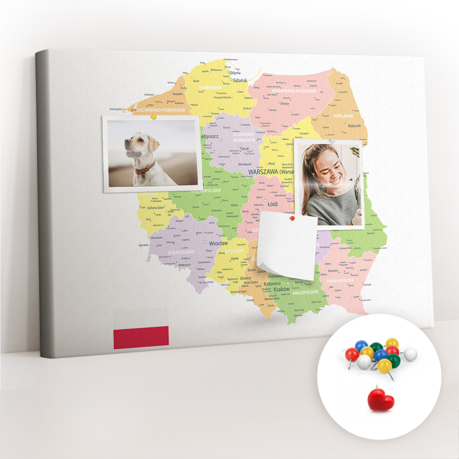 Tablica korkowa z nadrukiem z kolorowymi pinezkami