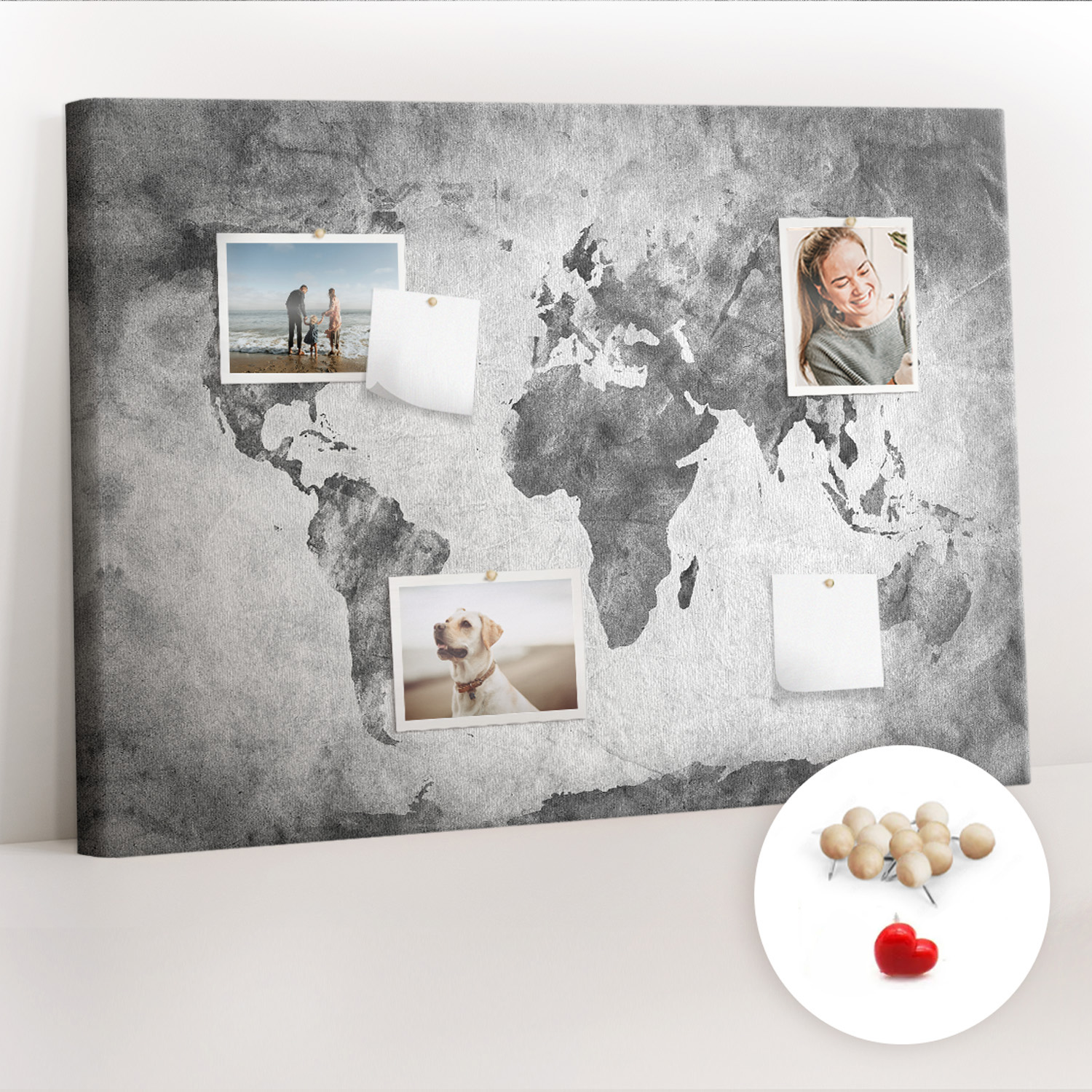 Tablica korkowa z nadrukiem do pracy + pinezki Mapa świata