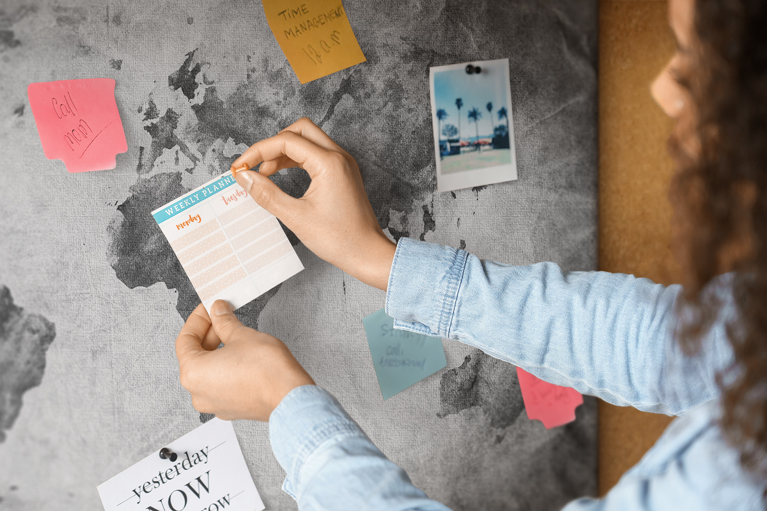 Tablica korkowa z nadrukiem do pracy + pinezki Mapa świata