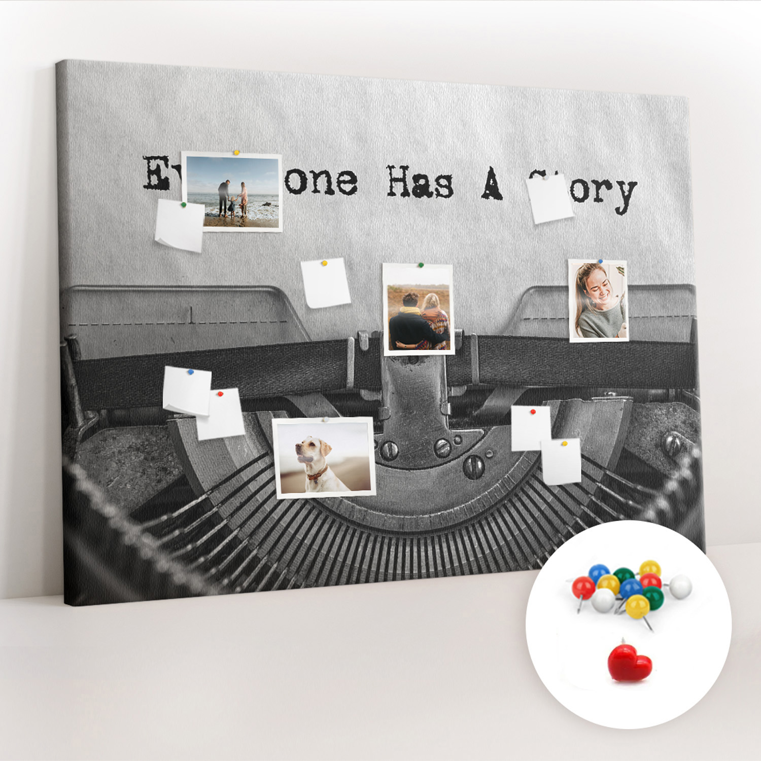 Tablica korkowa z nadrukiem z kolorowymi pinezkami