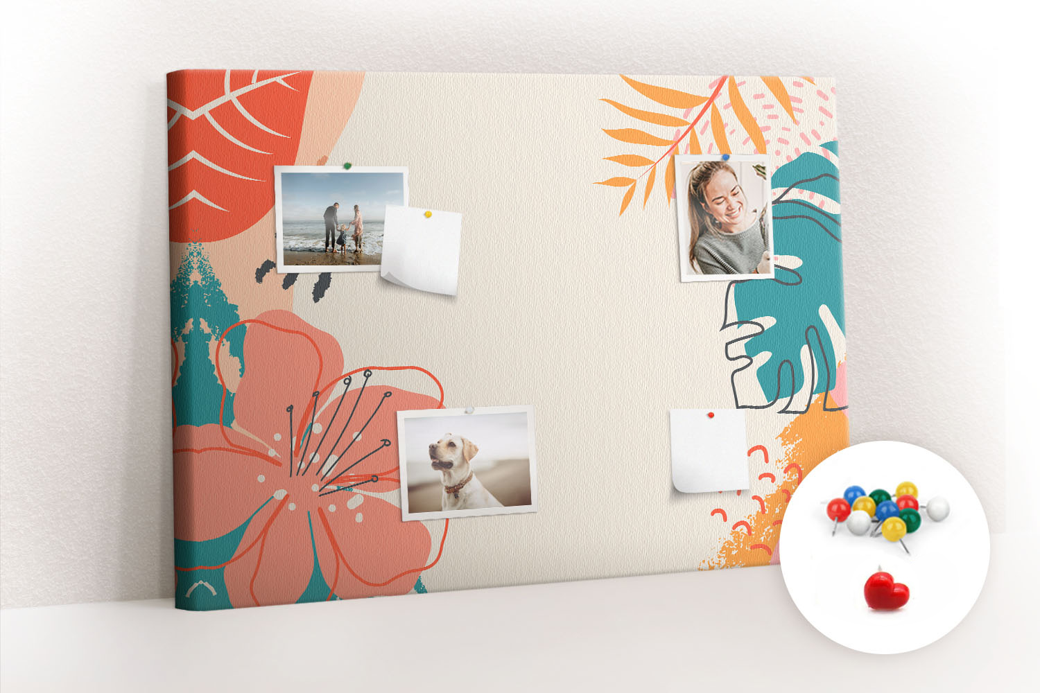 Tablica korkowa z nadrukiem z kolorowymi pinezkami