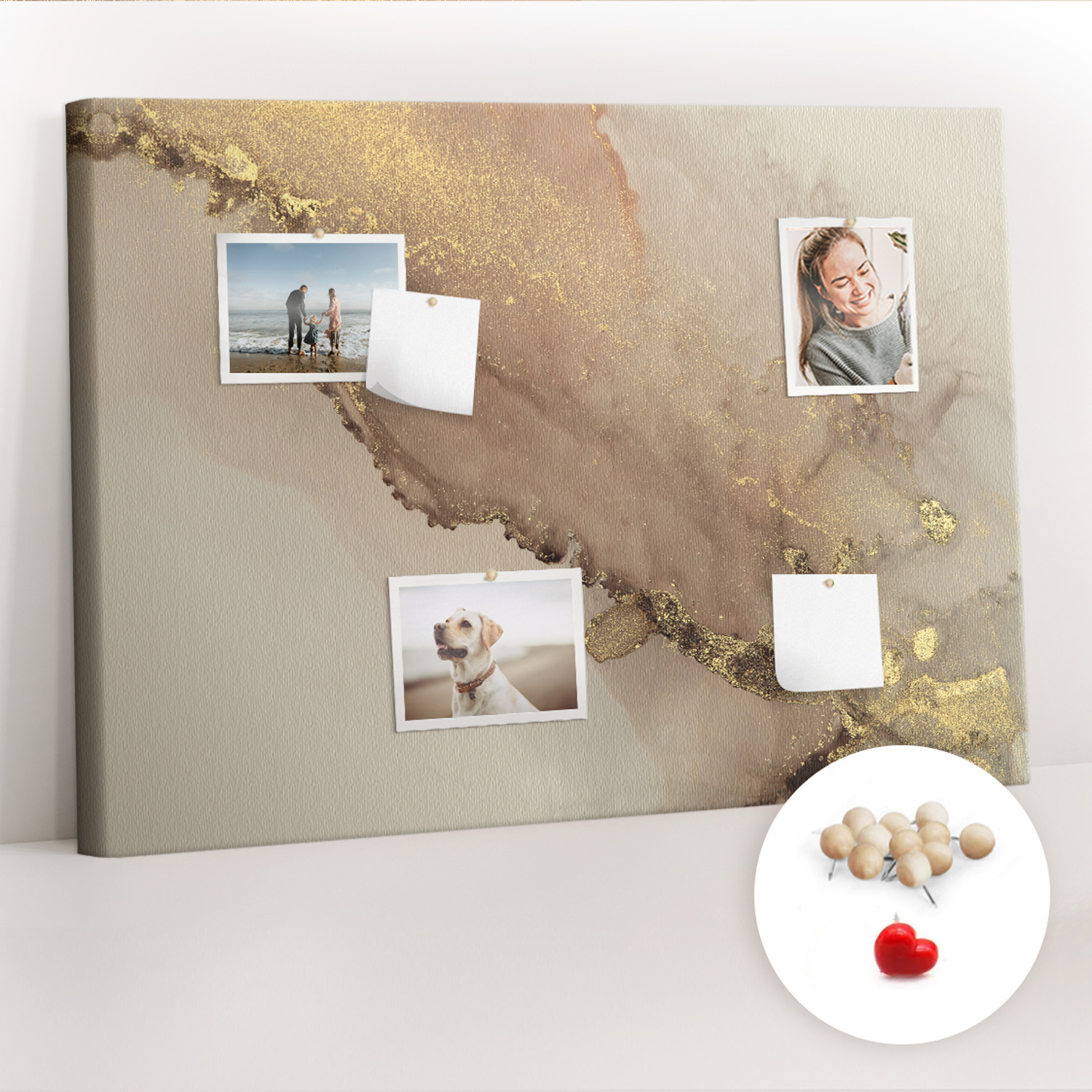 Tablica korkowa z nadrukiem do pracy + pinezki Złoty marmur