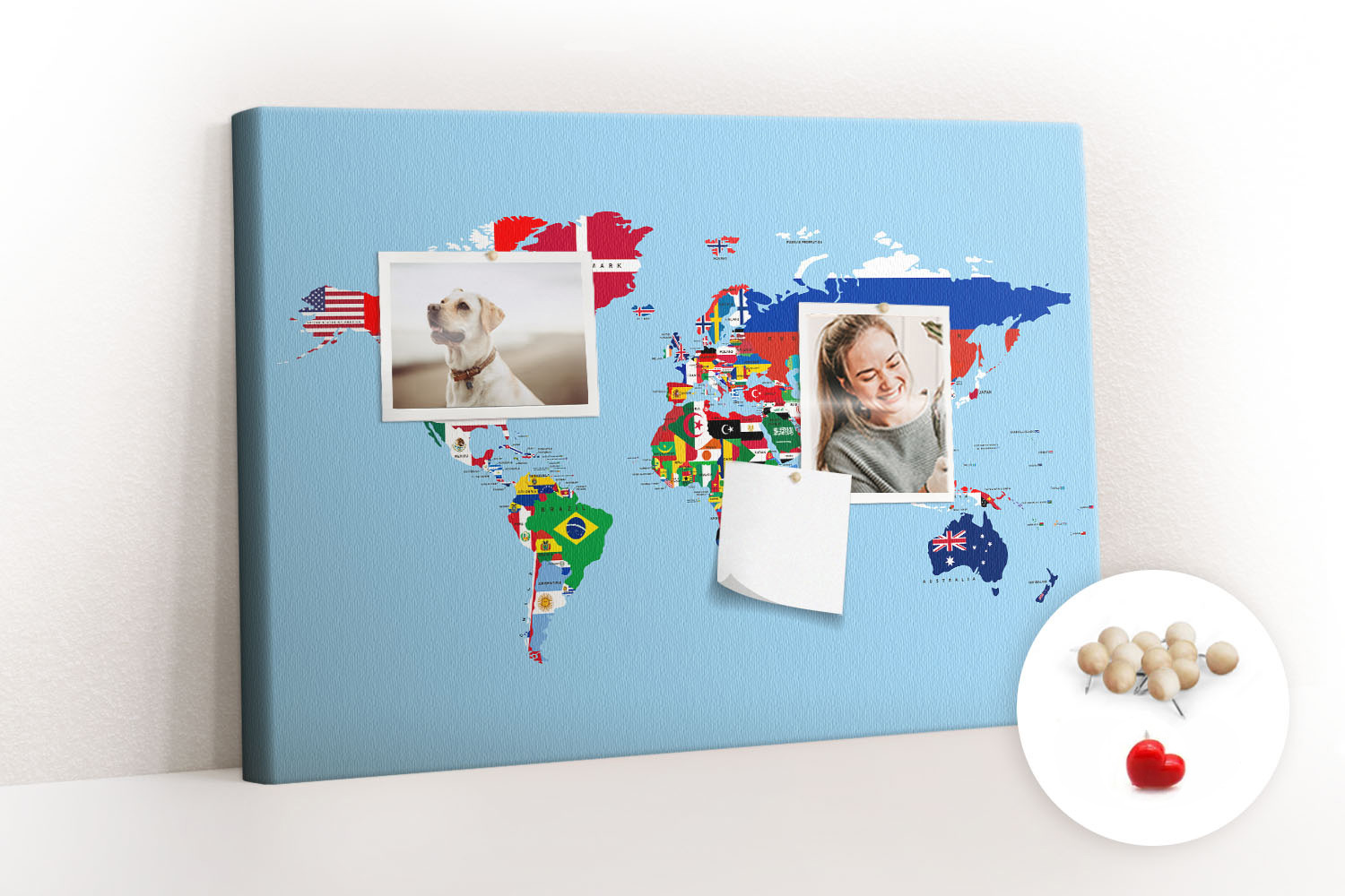 Tablica korkowa z nadrukiem do przedpokoju + pinezki Mapa
