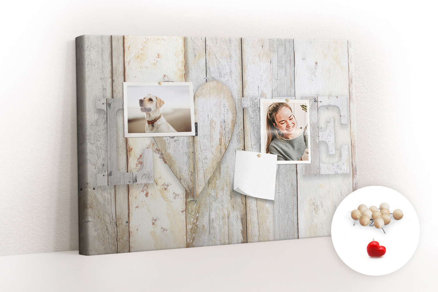 Tablica korkowa z nadrukiem do przedpokoju + pinezki Miłość