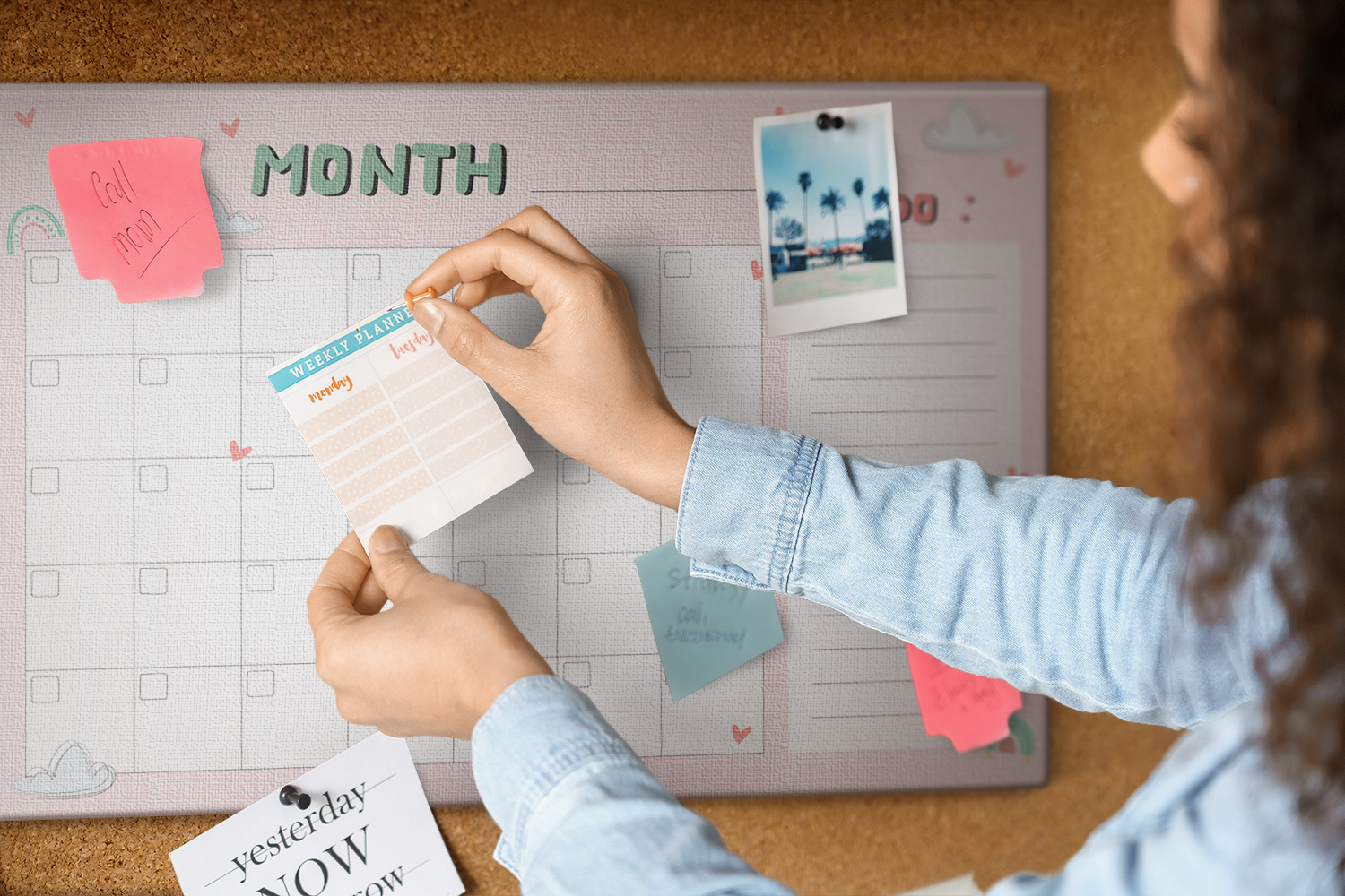 Tablica korkowa z nadrukiem do przedpokoju + pinezki Planer