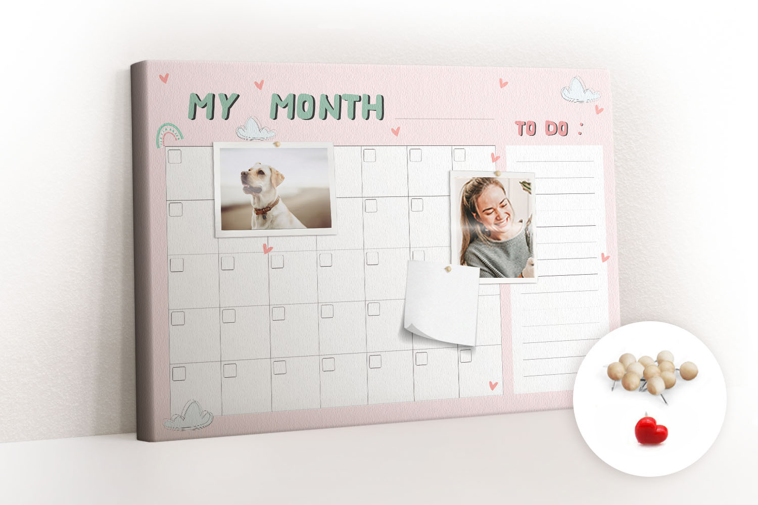 Tablica korkowa z nadrukiem do przedpokoju + pinezki Planer