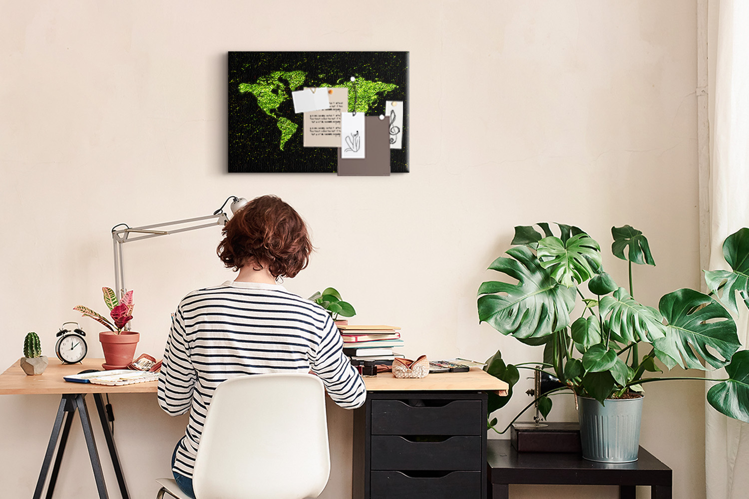 Tablica korkowa z nadrukiem do salonu + pinezki Mapa śwata