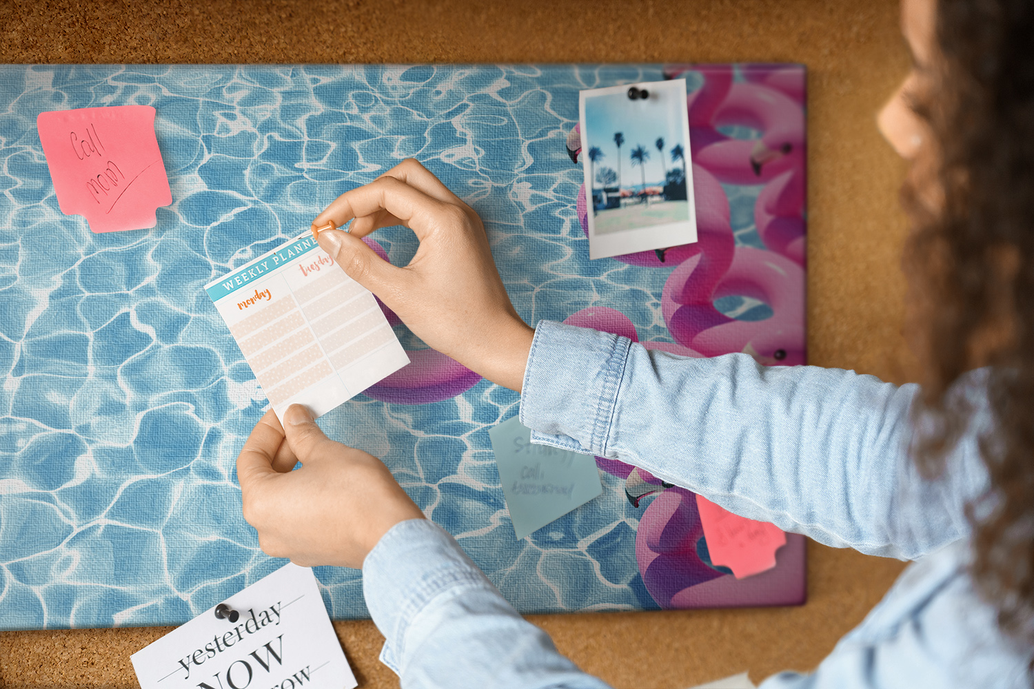 Tablica korkowa z nadrukiem do salonu + pinezki Planer