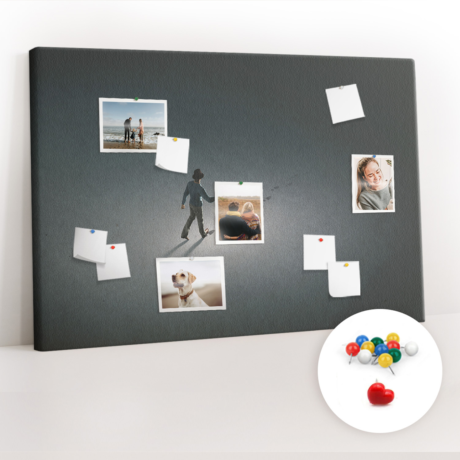 Tablica korkowa z nadrukiem z kolorowymi pinezkami