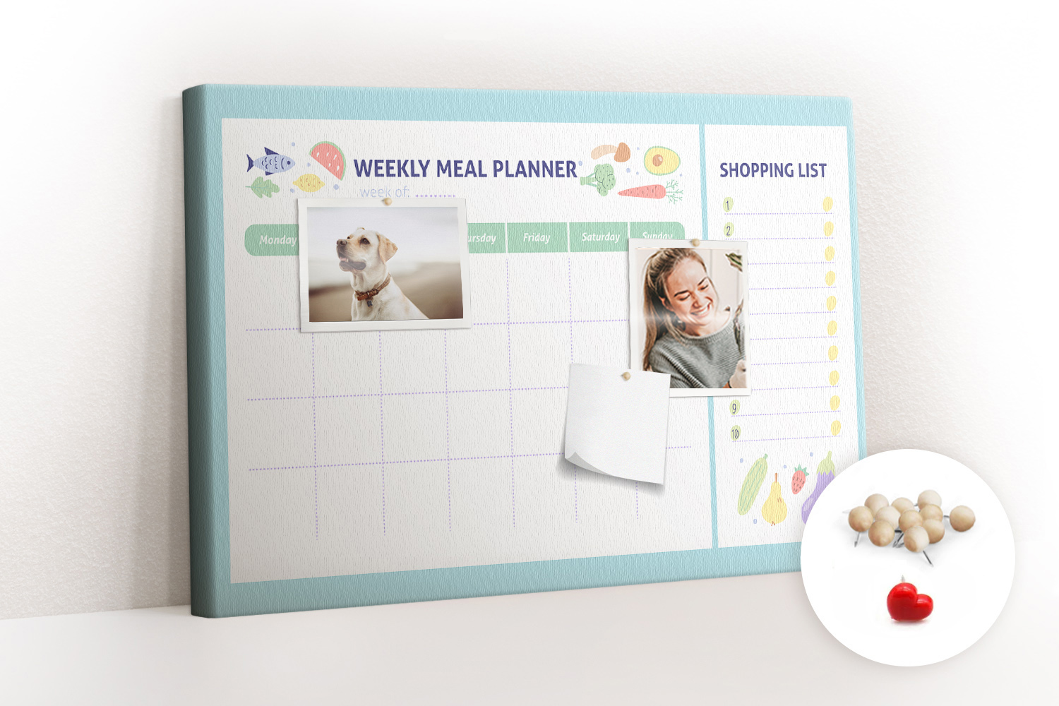 Tablica korkowa z nadrukiem do salonu + pinezki Planer