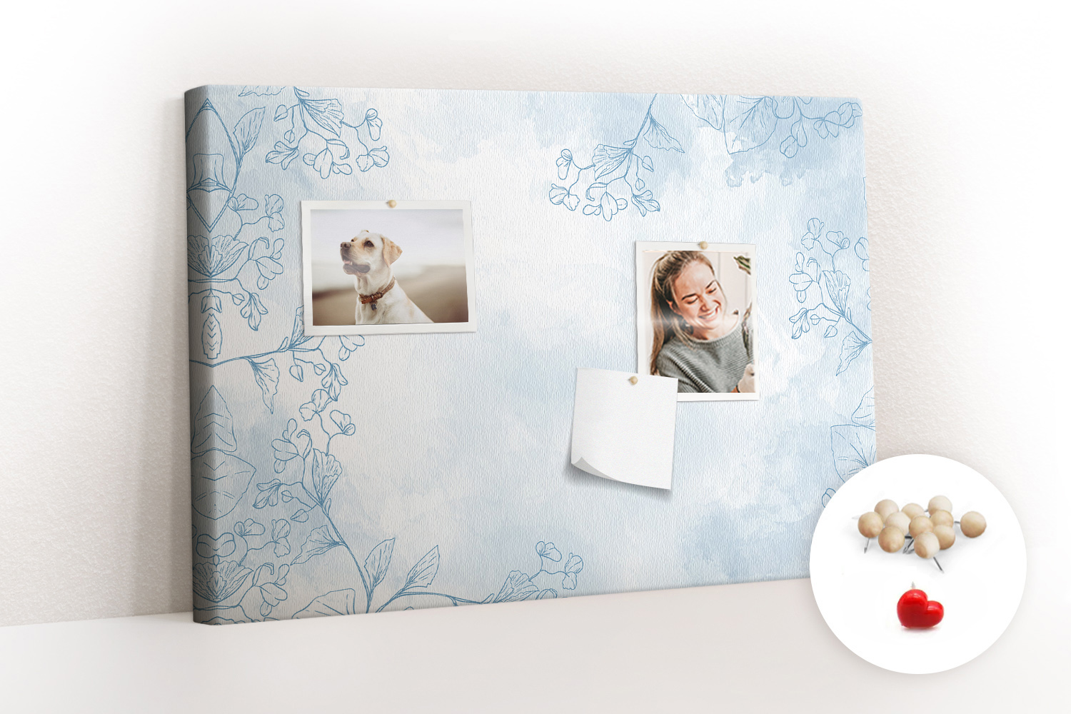 Tablica korkowa z nadrukiem do salonu + pinezki Szkic roślin
