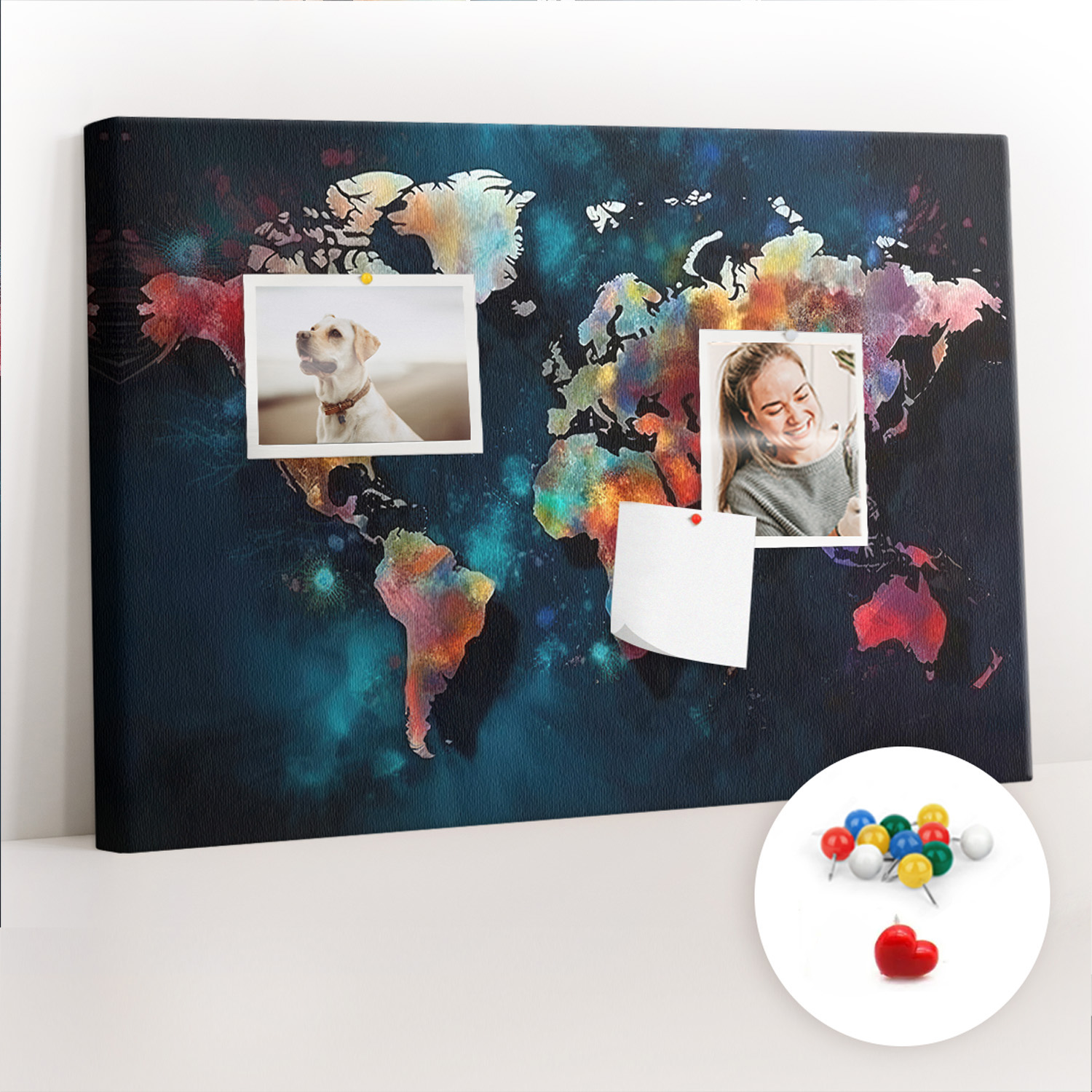 Tablica korkowa z nadrukiem do sypialni + pinezki Mapa