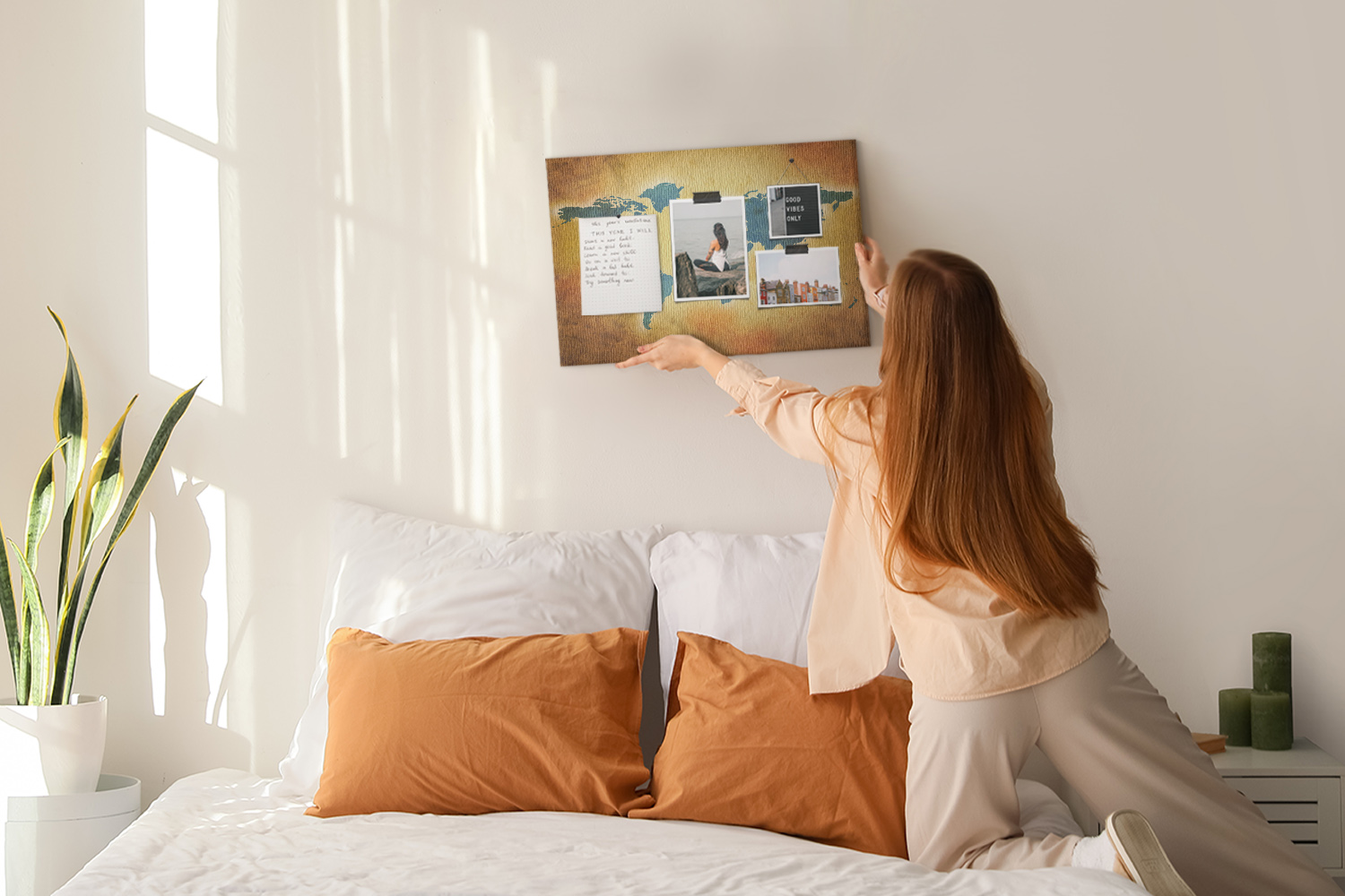 Tablica korkowa z nadrukiem do sypialni + pinezki Mapa