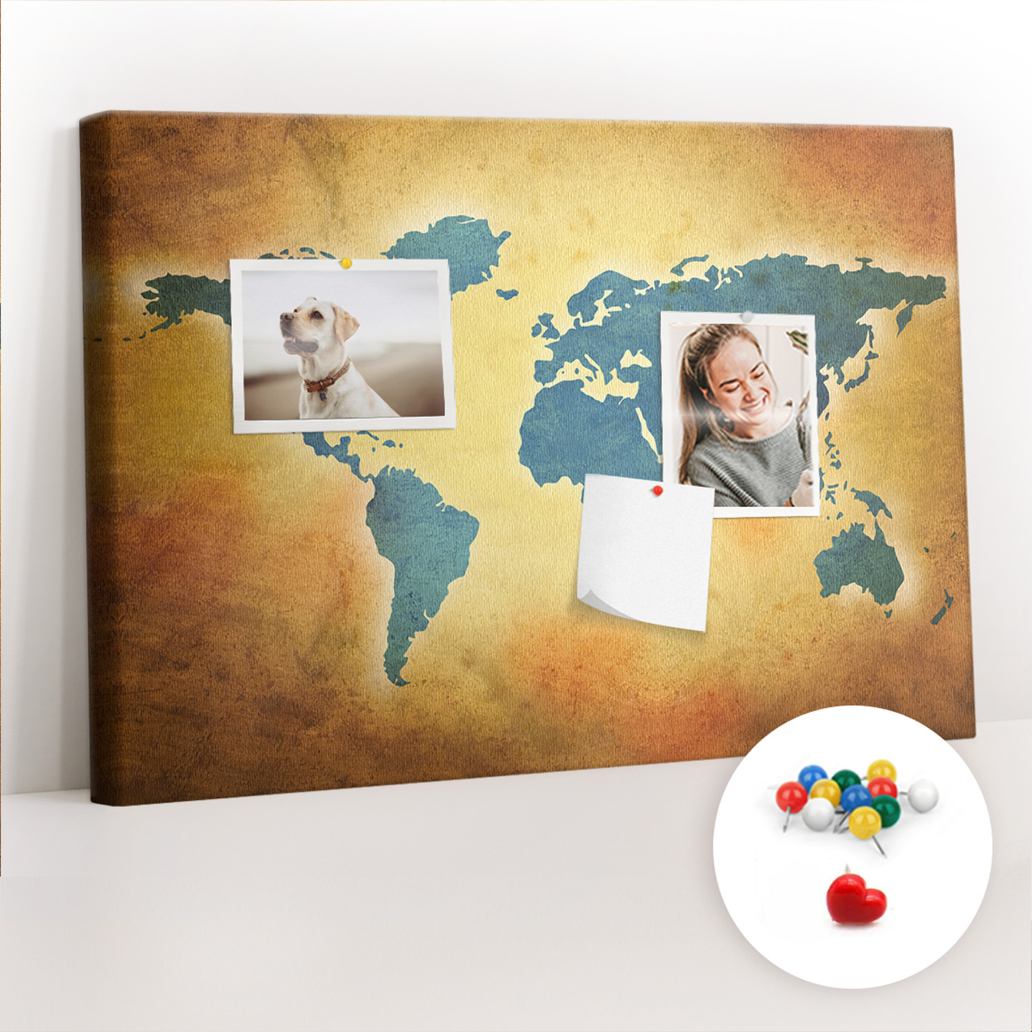 Tablica korkowa z nadrukiem do sypialni + pinezki Mapa, 2396363