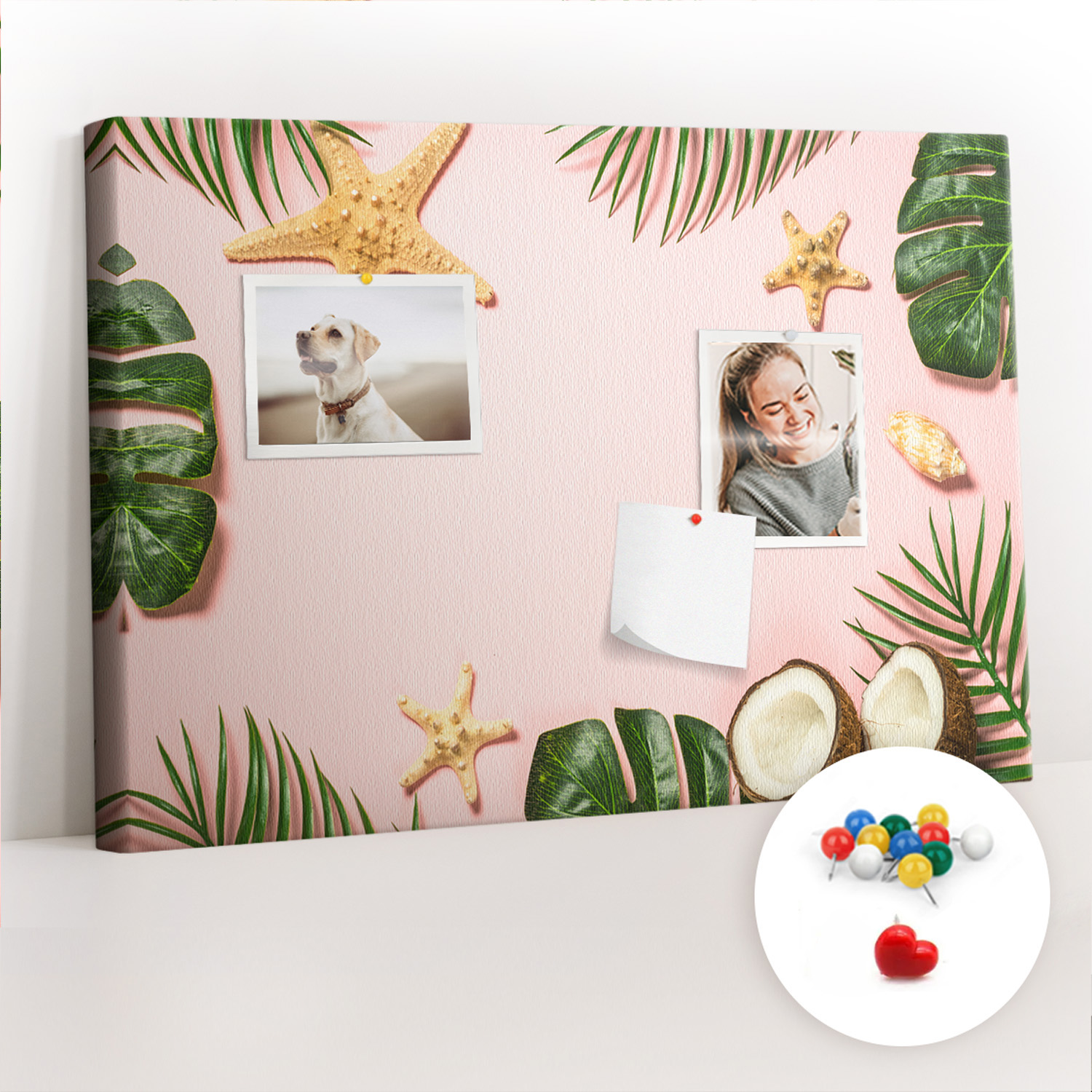 Tablica korkowa z nadrukiem z kolorowymi pinezkami