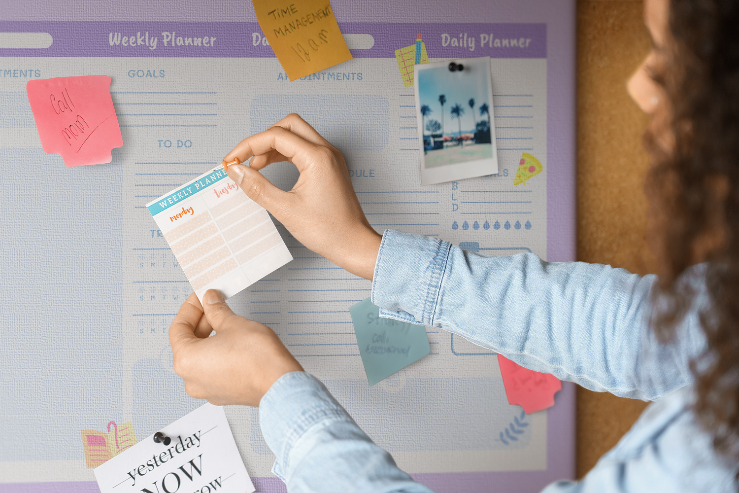 Tablica korkowa z nadrukiem do sypialni + pinezki Planer, 3589040