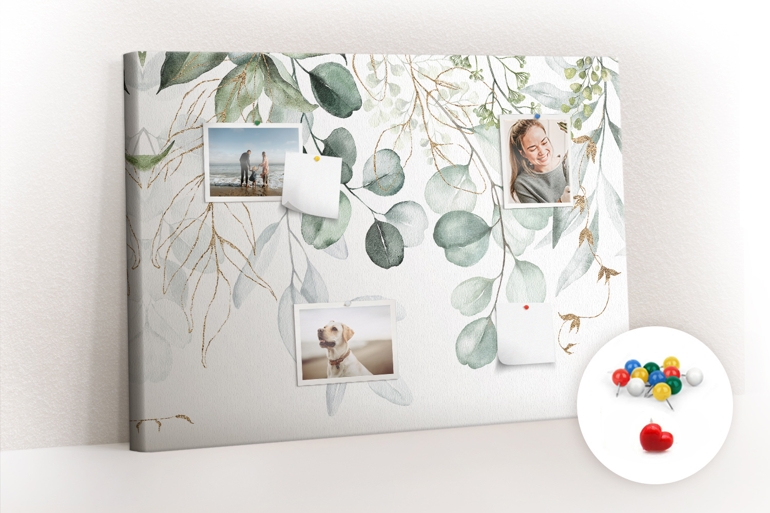 Tablica korkowa z nadrukiem do sypialni + pinezki Rośliny