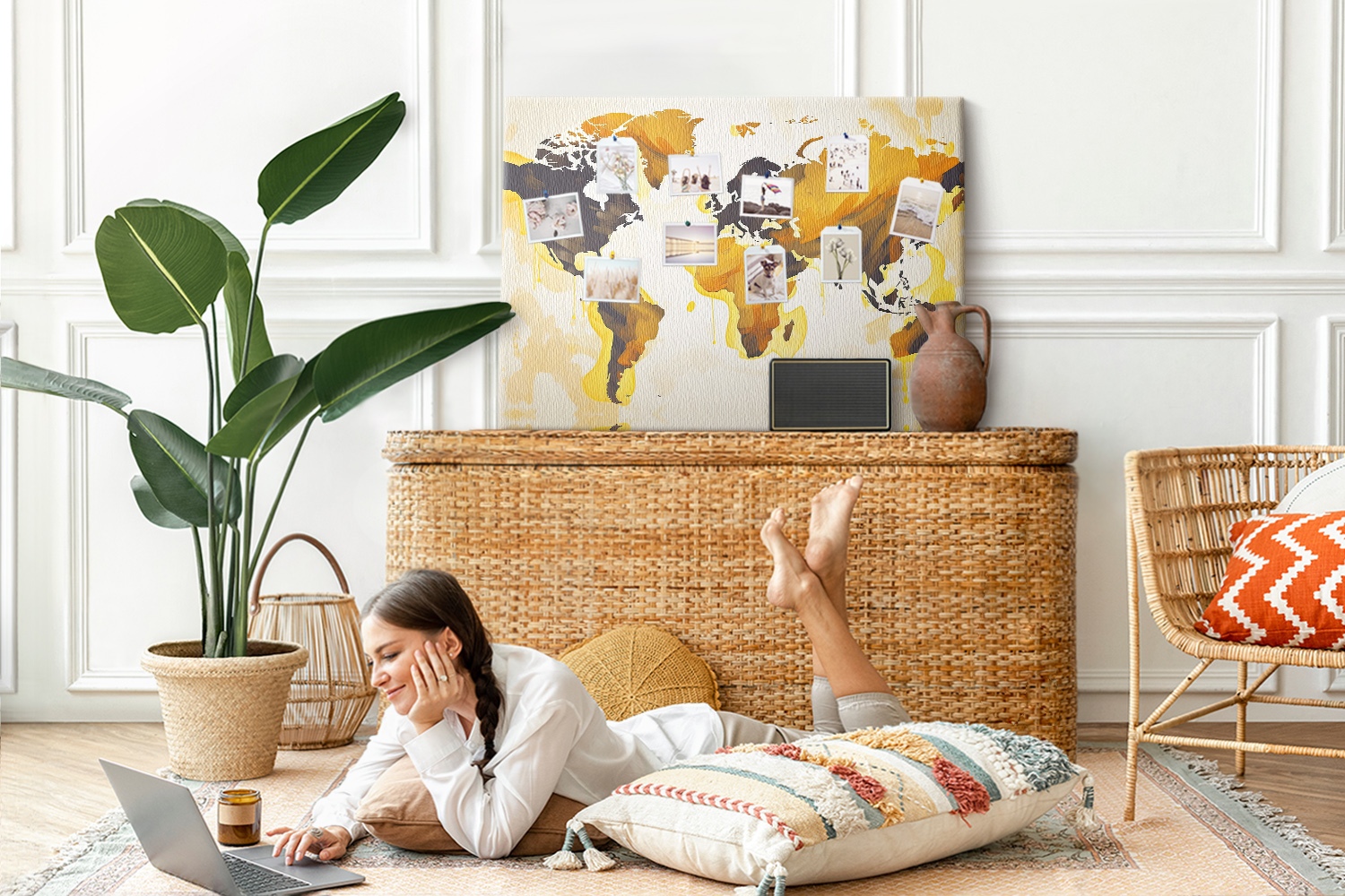 Nasze tablice korkowe dodadzą do każdego z pomieszczeń element zaskoczenia i spektakularny wygląd. Przestrzeń zyska nowe życie, dzięki pięknym i unikatowym wzorom. Razem z nami zainspiruj się i pobudź swoją kreatywność! Wśród bogatej kolekcji wzorów na pewno znajdziesz coś odpowiedniego dla Twojego stylu i gustu.