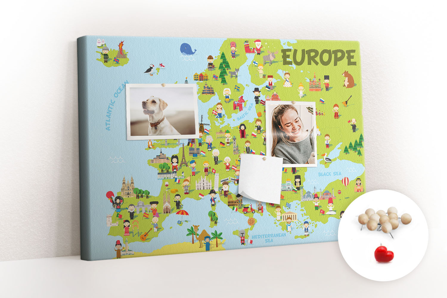 ? Kupując produkt otrzymujesz tablicę z pinezkami pokazanymi na miniaturce.