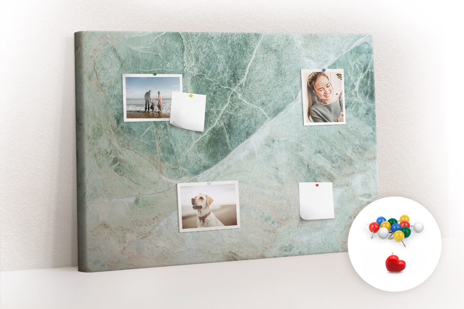 Tablica korkowa z nadrukiem z kolorowymi pinezkami