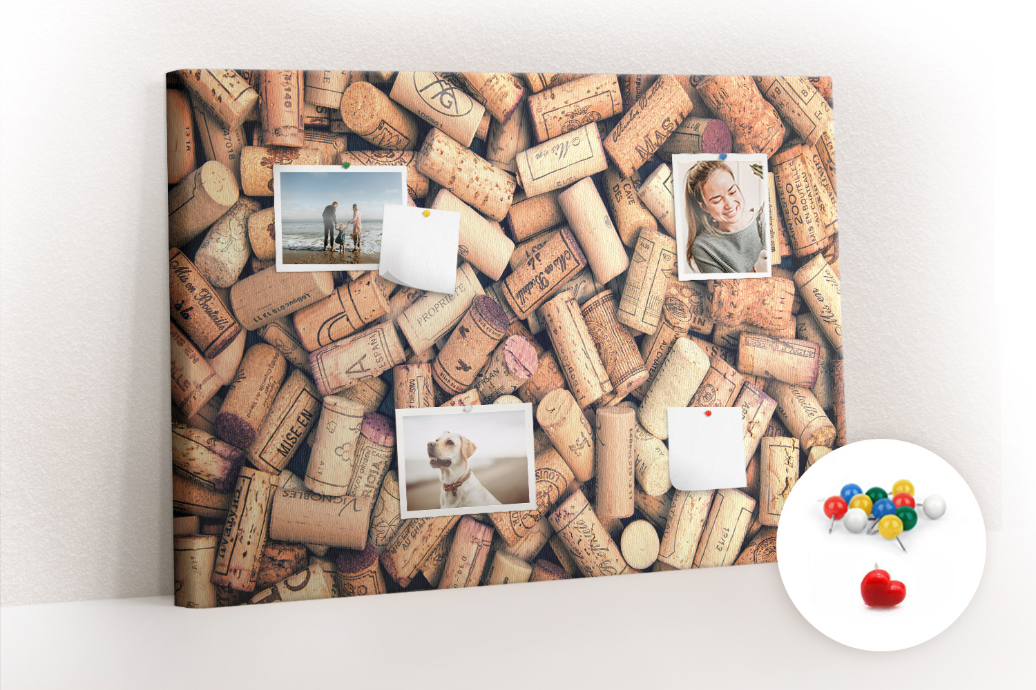 Tablica korkowa z nadrukiem z kolorowymi pinezkami