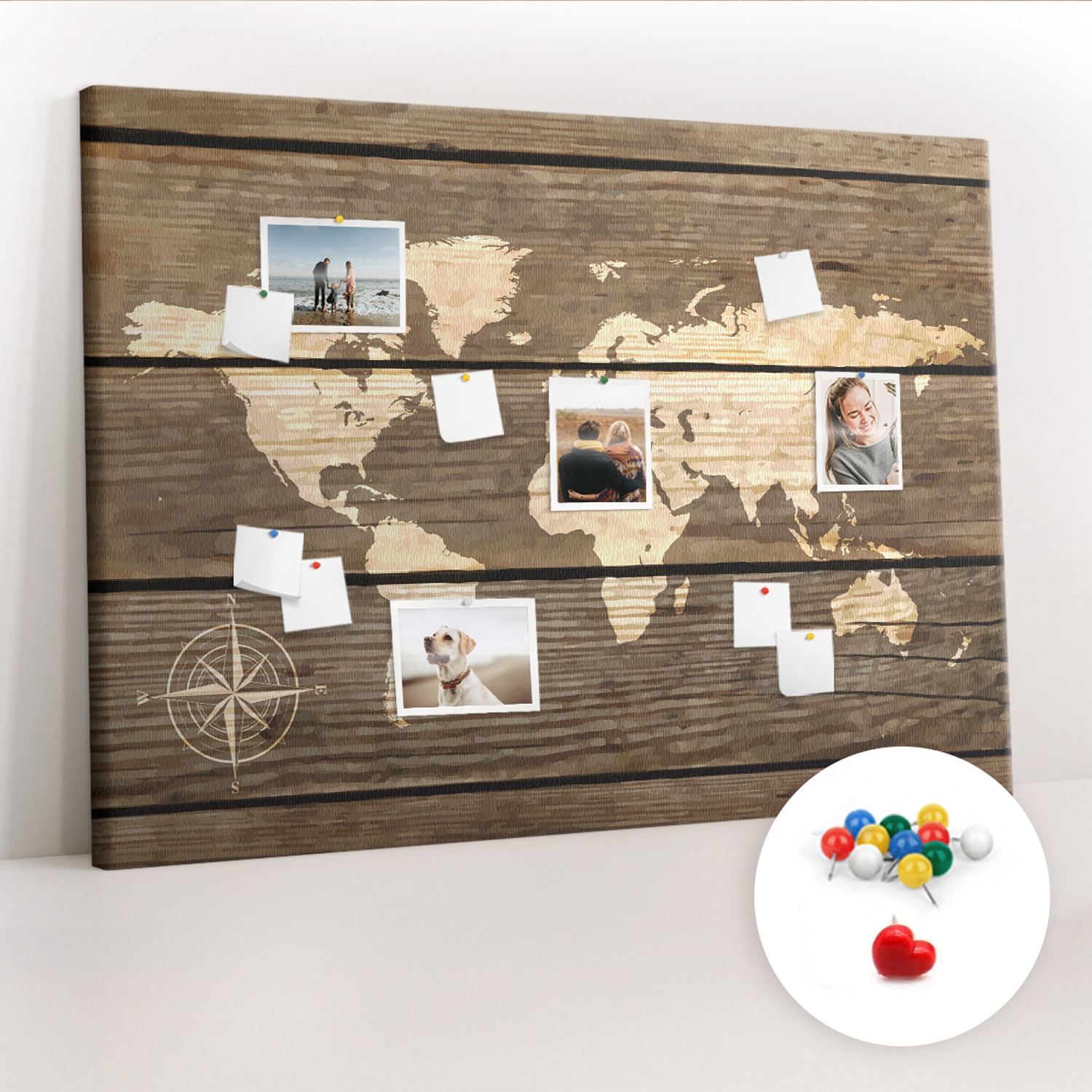 Tablica korkowa z nadrukiem organizer + pinezki Mapa Świata