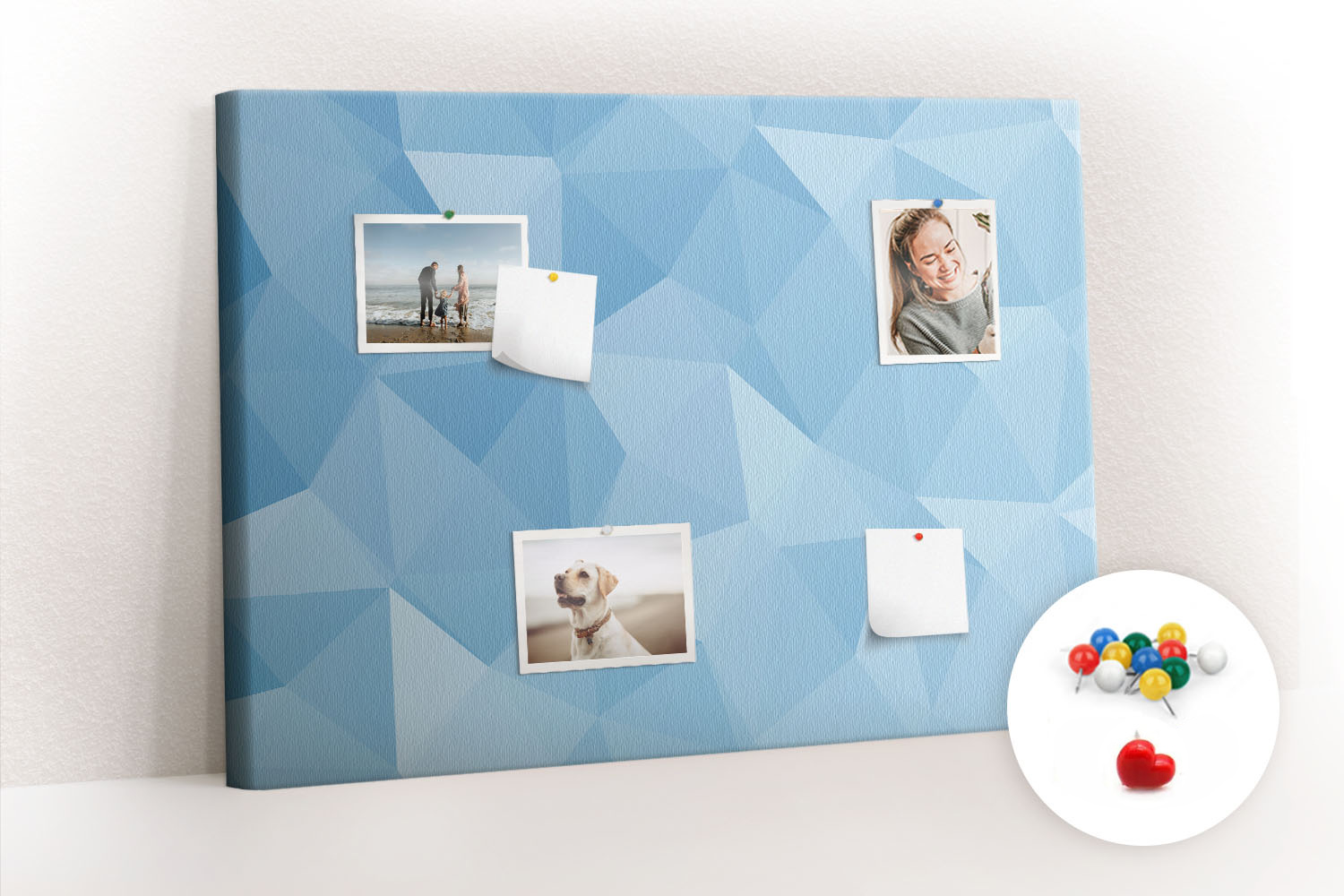 Tablica korkowa z nadrukiem z kolorowymi pinezkami
