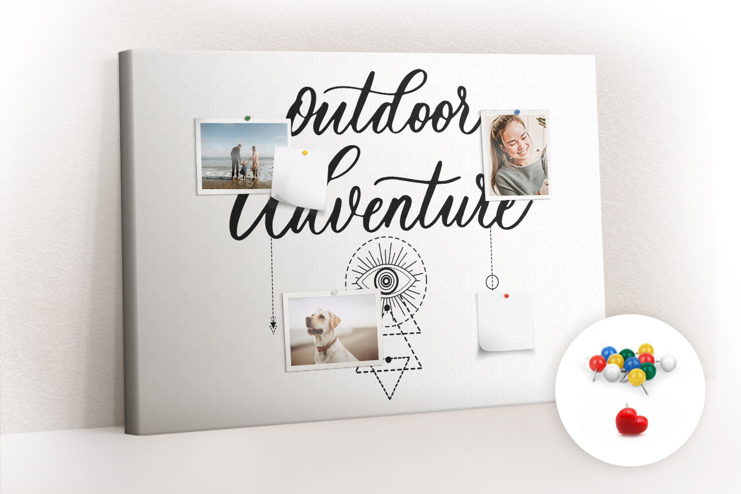 Tablica korkowa z nadrukiem z kolorowymi pinezkami