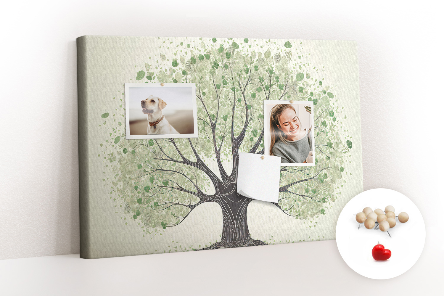 Tablica korkowa z nadrukiem planer + pinezki Drzewo natura
