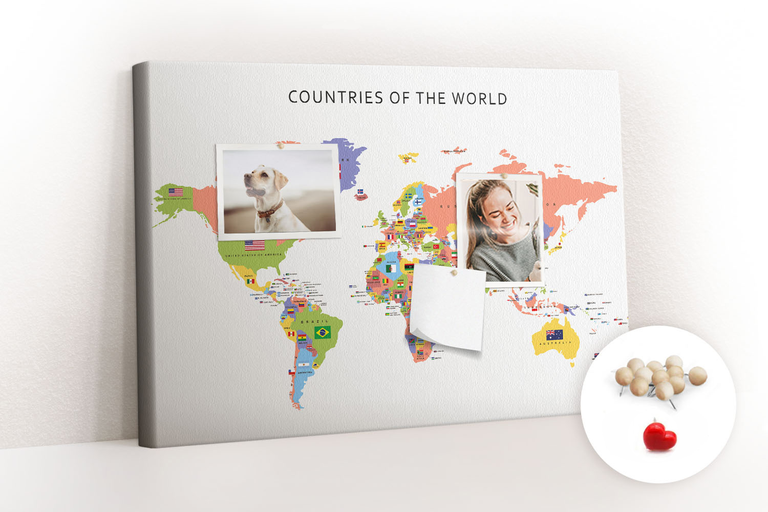 Tablica korkowa z nadrukiem planer + pinezki Mapa flag