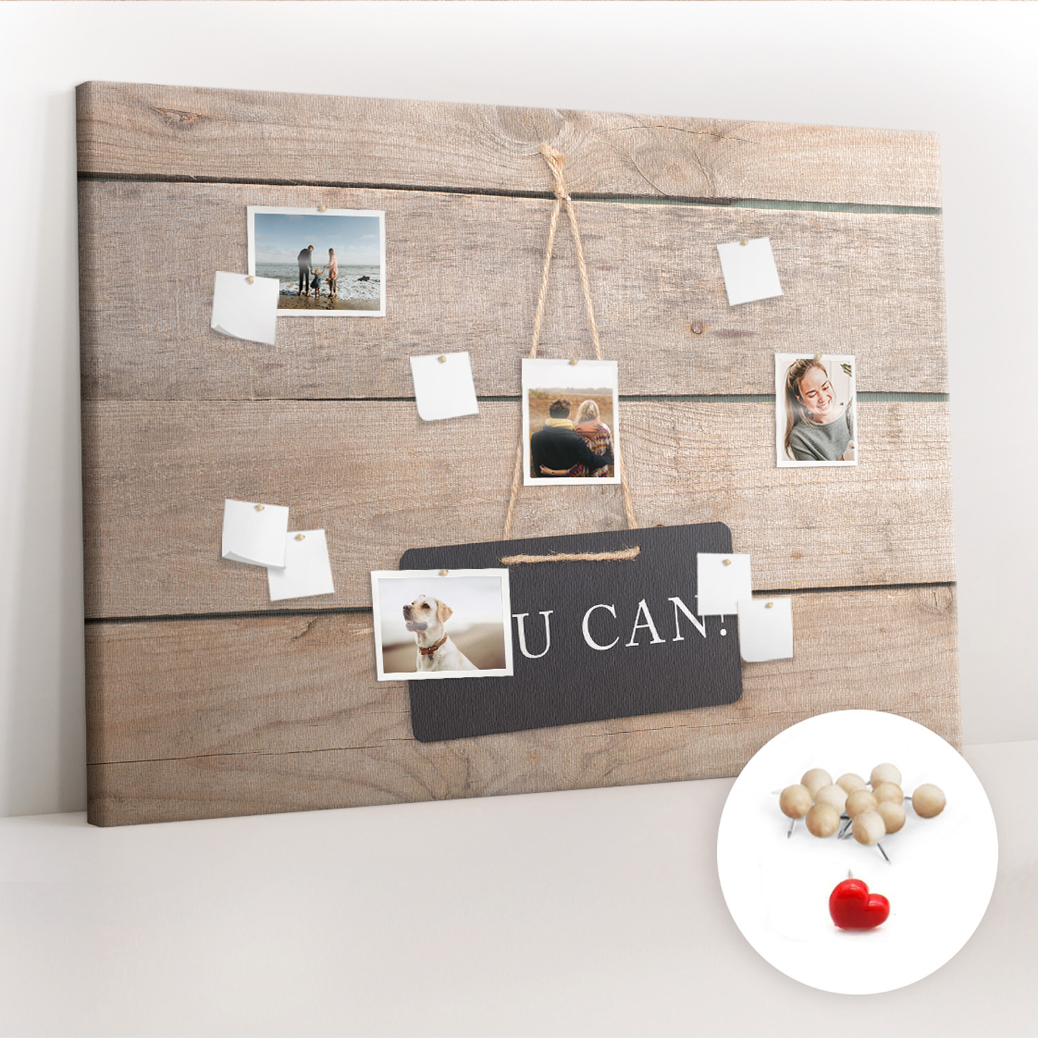 Tablica korkowa z nadrukiem z drewnianymi pinezkami