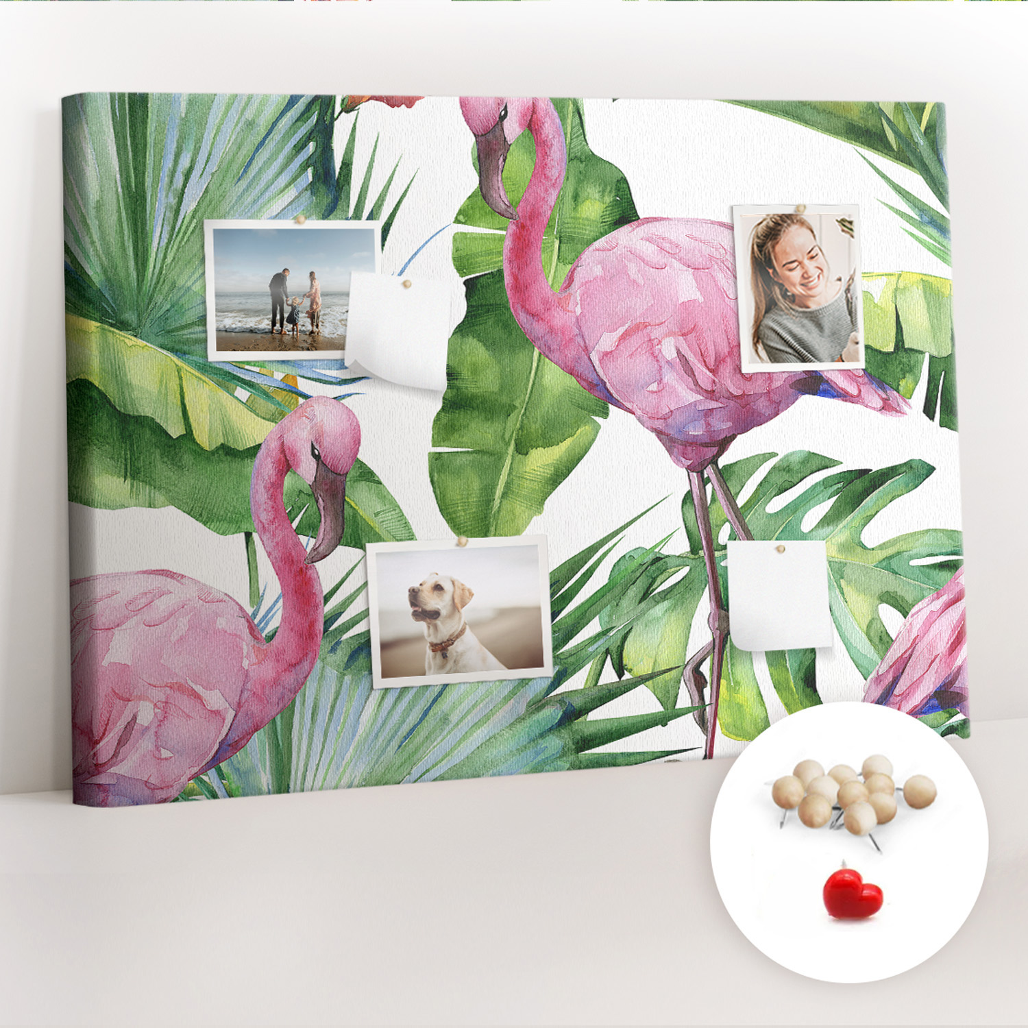 Tablica korkowa z nadrukiem planer + pinezki Natura flamingi