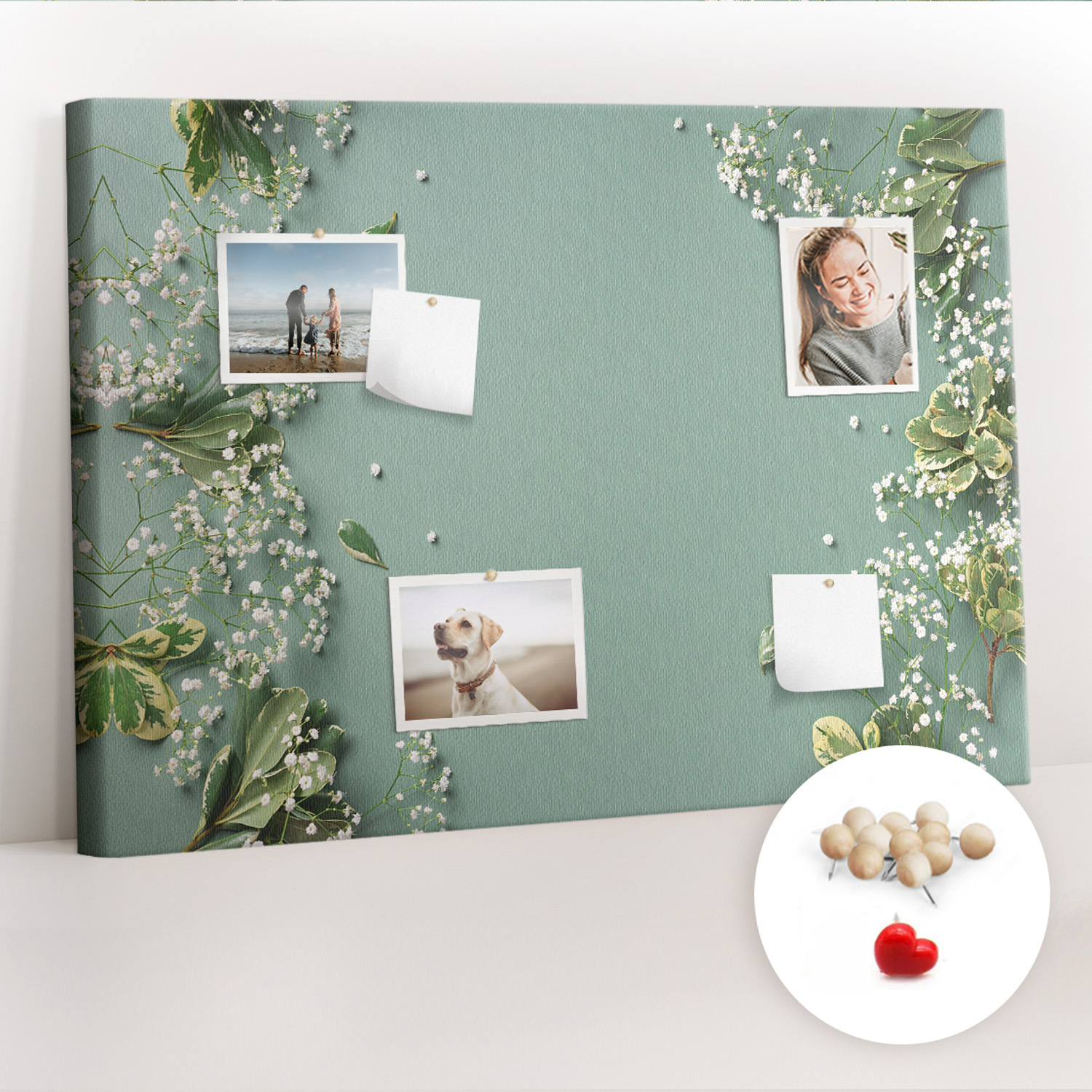 Tablica korkowa z nadrukiem z drewnianymi pinezkami