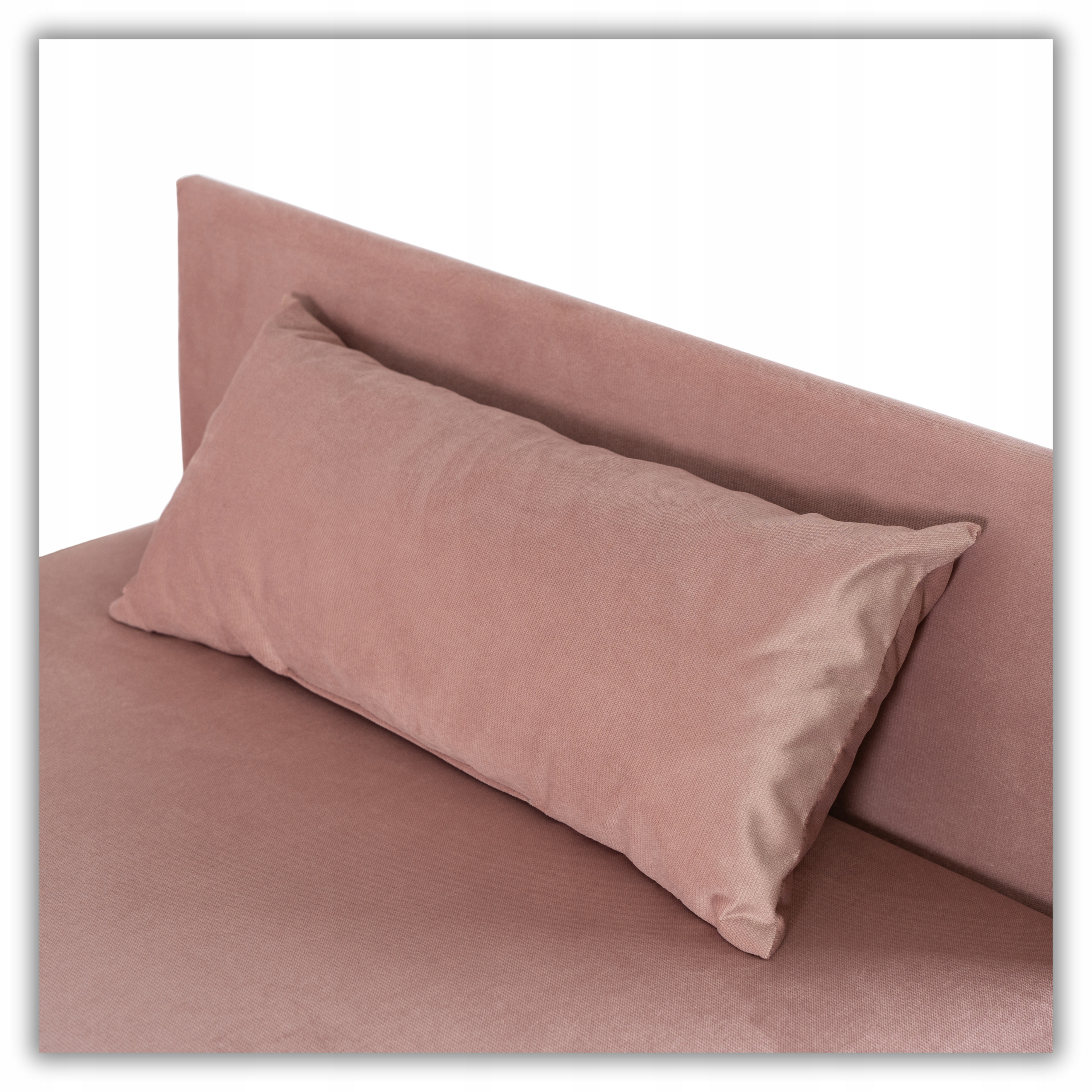 Do łóżka dołączona jest podłużna, miękka poduszka typu jasiek, która jest tapicerowaną taką samą tkaniną jak reszta mebla.