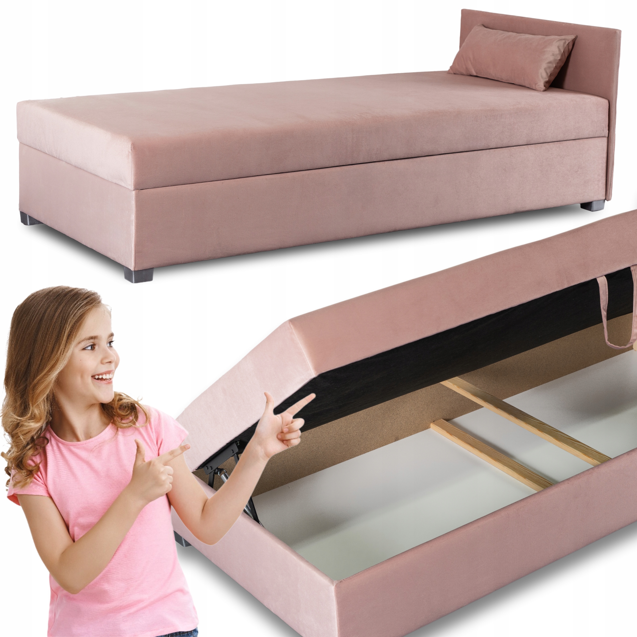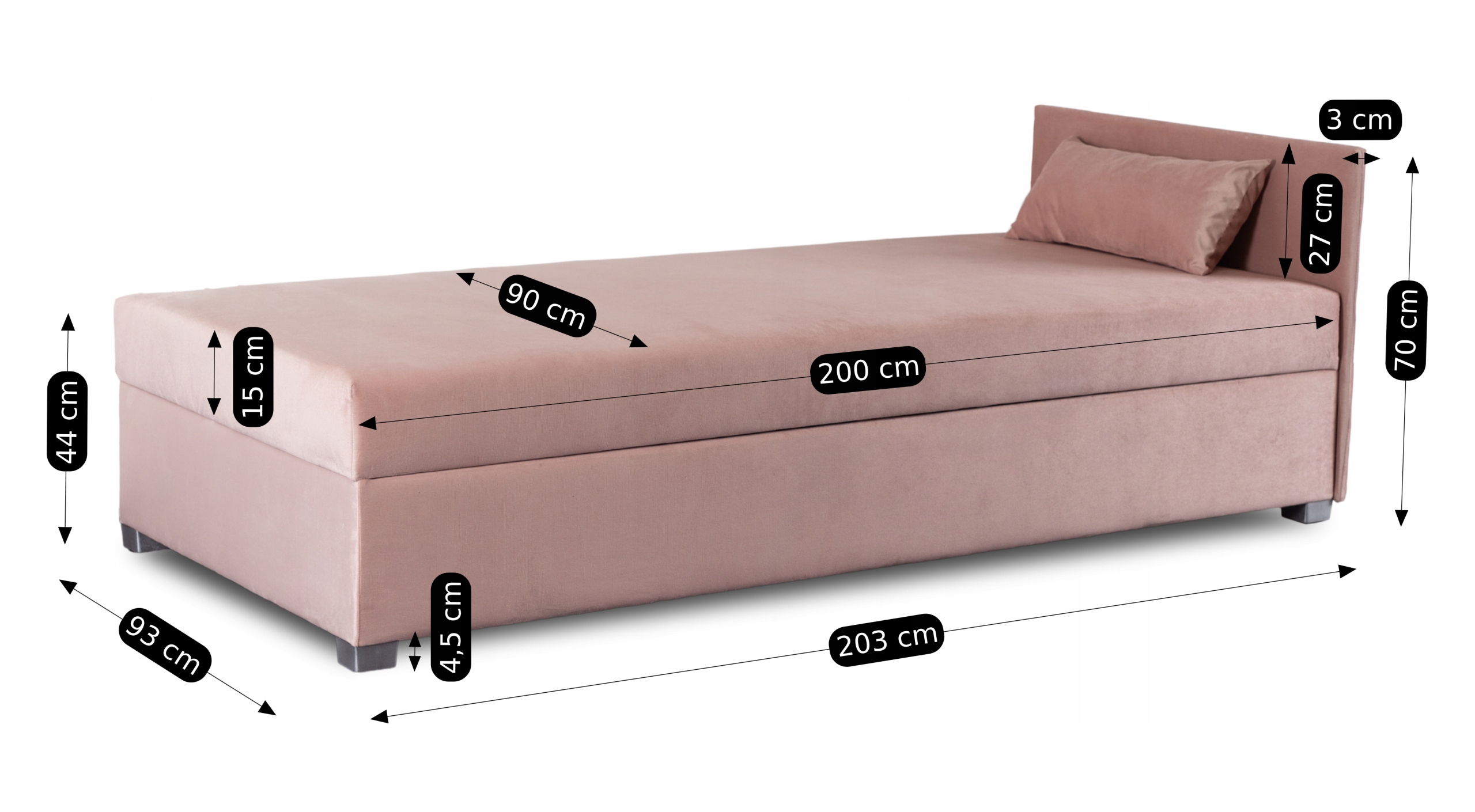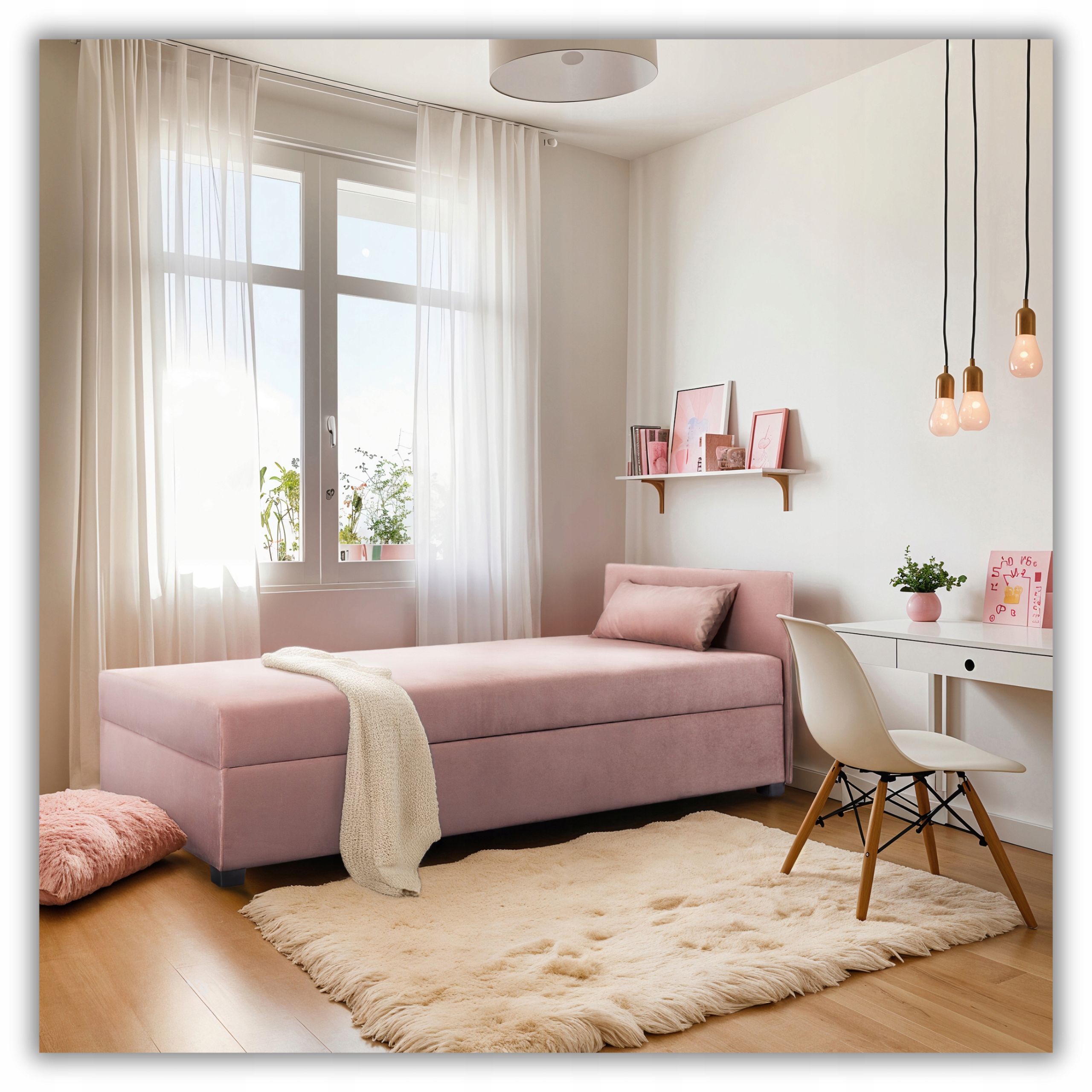 Tapczan Jednoosobowy 90x200 Łóżko Młodzieżowe Tapicerowane Różowe KARO ⭐⭐⭐⭐⭐