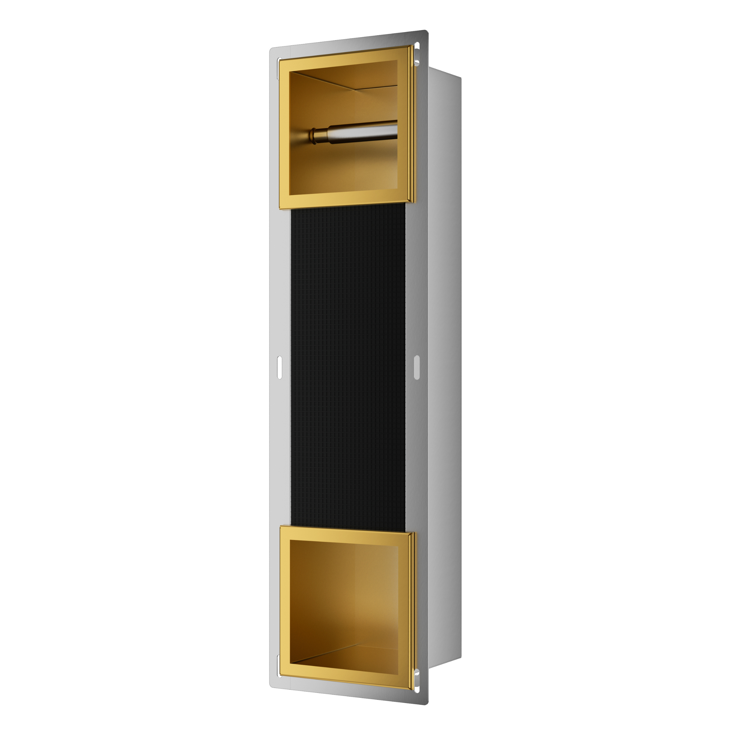WALL-BOX PAPER 2 to podręczne uchwyty na papier toaletowy wraz z ukrytym w ścianie schowkiem na jego zapas. Połączenie tych dwóch funkcji pozwala na bieżące uzupełnianie papieru na podajniku. Zapasy papieru toaletowego najczęściej przechowywane są w szafkach łazienkowych, ale także w kuchni czy przedpokoju. Tymczasem nowa rolka powinna być zawsze w zasięgu ręki.