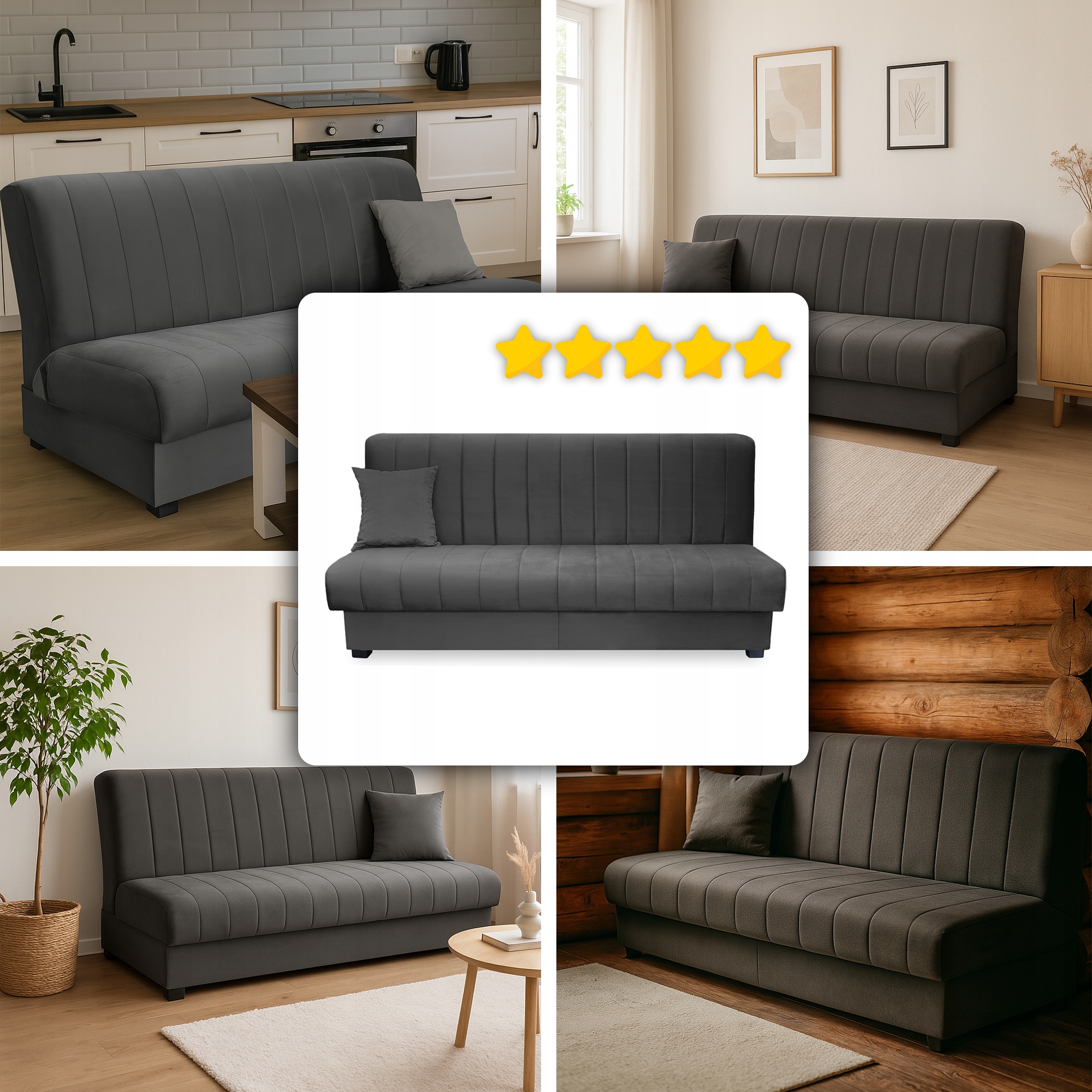 - Dla rodzin – funkcja spania i pojemnik na pościel czynią ją idealnym wyborem do salonu lub pokoju gościnnego – praktyczna i estetyczna zarazem.